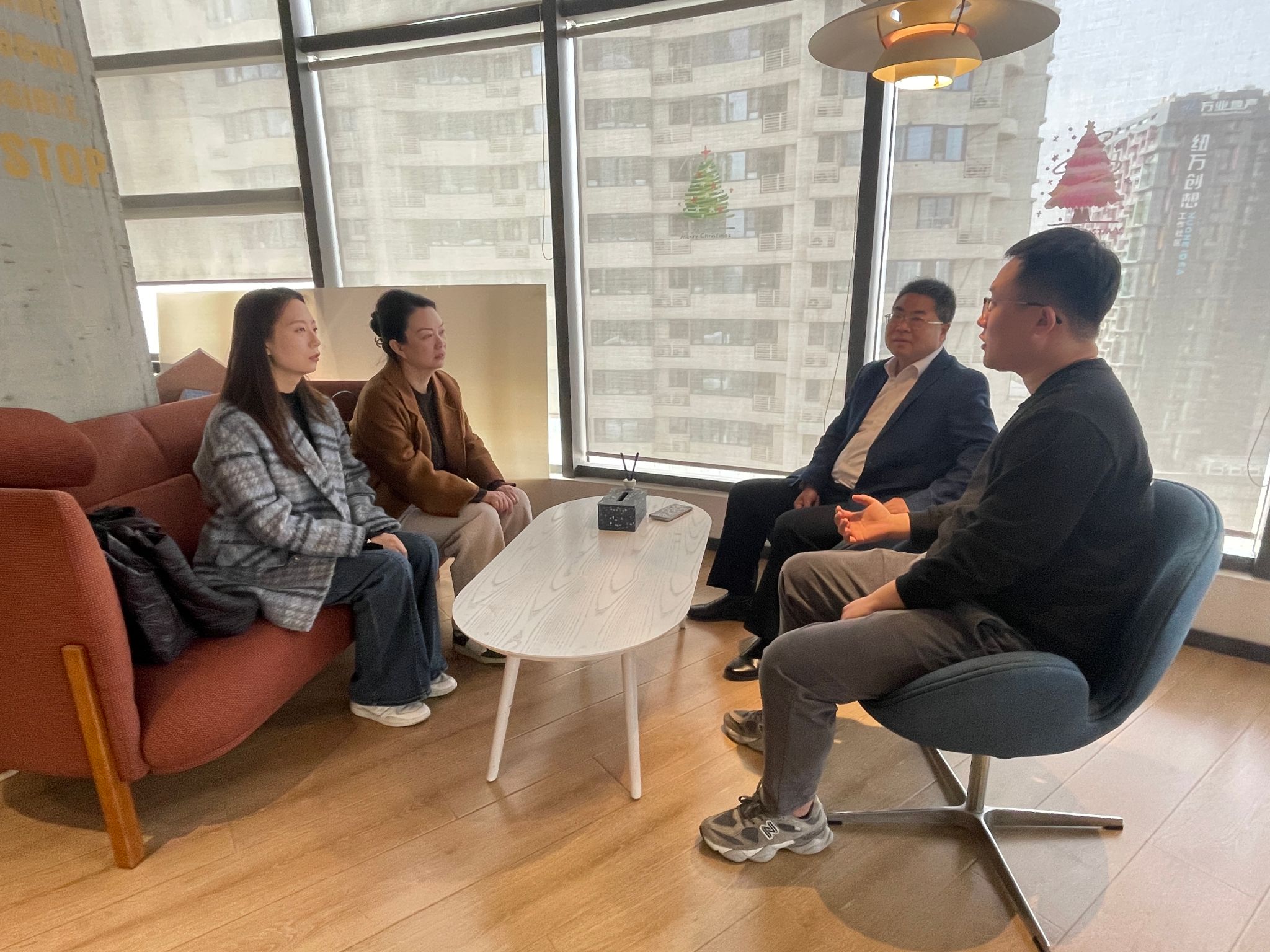 儀式結(jié)束后,余小勇一行人參觀了AF國際藝術(shù)中心的教學區(qū)、作品展示廳及辦公環(huán)境,深入了解企業(yè)運營模式與實習場景?。盛丹與企業(yè)代表圍繞學生留學申請中的常見問題展開討論,計劃未來將聯(lián)合協(xié)作,一同優(yōu)化實習指導方案,為學生提供“一站式”留學與就業(yè)服務(wù)?。