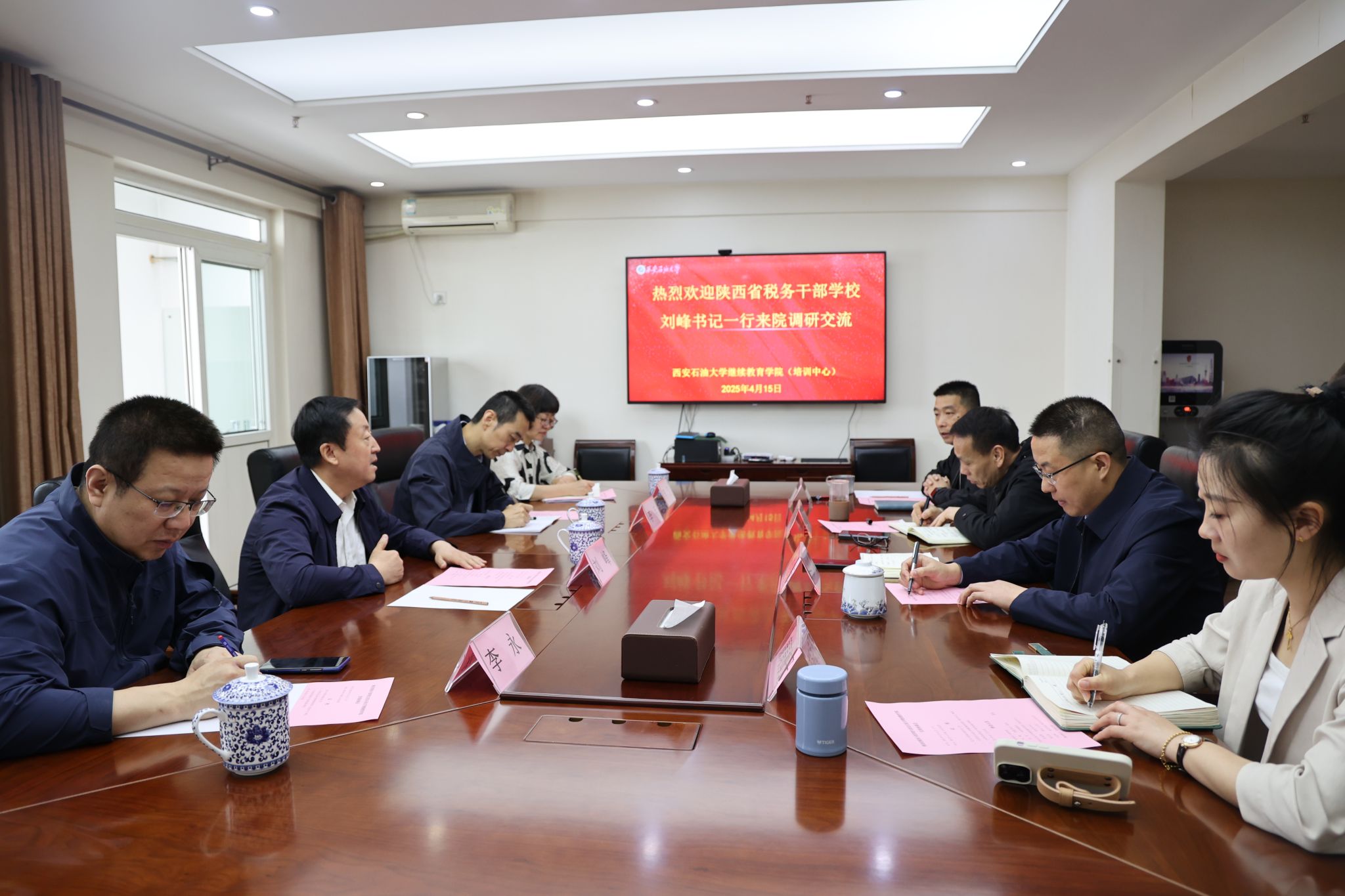 4月15日上午,陜西省稅務(wù)干部學(xué)校(以下簡稱“省稅校”)黨組書記、校長劉峰一行四人前來我校調(diào)研交流。繼續(xù)教育學(xué)院黨總支書記張凌寒、院長林紅先參加了座談。