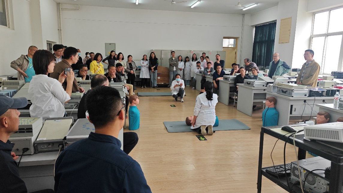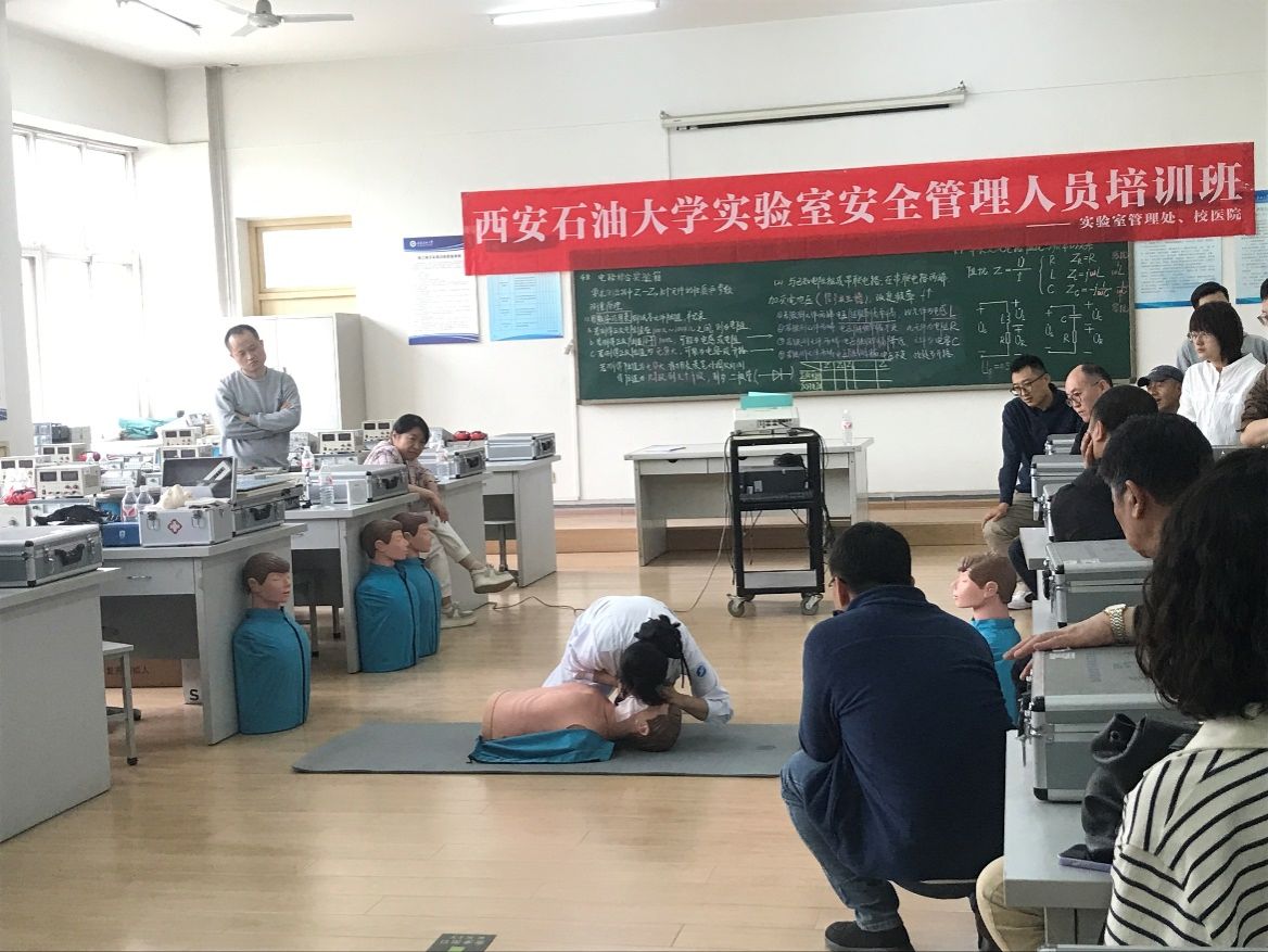 培訓(xùn)內(nèi)容二—校園應(yīng)急救護(hù)培訓(xùn)。校醫(yī)院主管護(hù)師、陜西省紅十字救護(hù)師宋彥霞、解姣兩位老師為全體參訓(xùn)人員進(jìn)行了心肺復(fù)蘇技術(shù)(CPR)和自動體外除顫儀(AED)的使用、氣道異物梗阻的應(yīng)急處理(海姆立克急救法)外傷止血與包扎技巧、燒燙傷的科學(xué)處理等緊急救護(hù)知識和技能的培訓(xùn)。她們通過生動的案例分析和實景演示,大家詳細(xì)講解了各類突發(fā)情況的處置要點(diǎn)和注意事項,令大家受益匪淺。