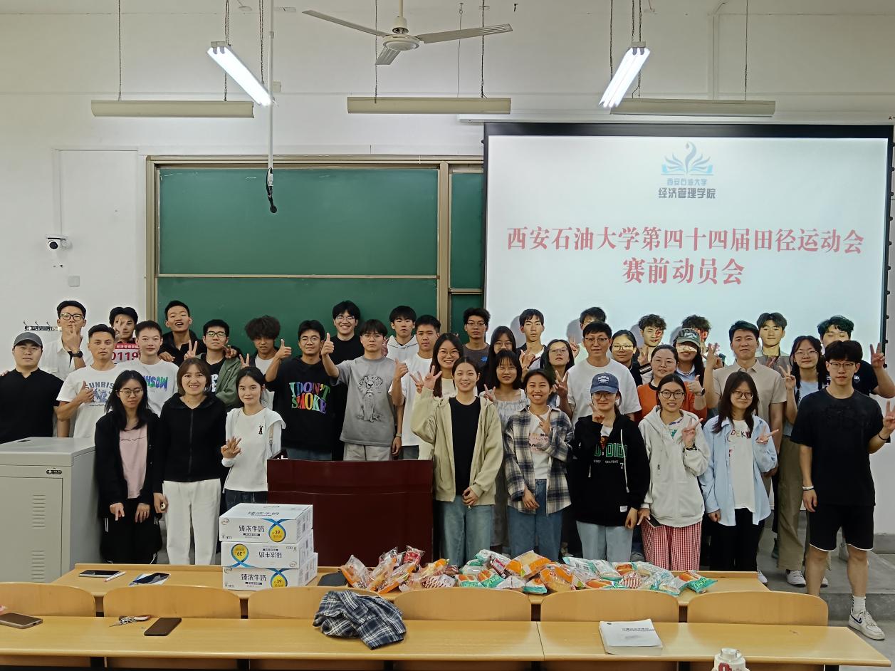 為進(jìn)一步做好學(xué)校第四十四屆田徑運(yùn)動(dòng)會(huì)各項(xiàng)準(zhǔn)備工作,點(diǎn)燃經(jīng)濟(jì)管理學(xué)院運(yùn)動(dòng)員競(jìng)技熱情,提振拼搏精神和競(jìng)賽精神,增強(qiáng)參賽安全意識(shí),4月23日,經(jīng)濟(jì)管理學(xué)院在鄠邑校區(qū)博思樓114教室召開學(xué)校第四十四屆田徑運(yùn)動(dòng)會(huì)賽前動(dòng)員會(huì)。學(xué)院黨委副書記楊生強(qiáng)、學(xué)生工作辦公室主任張碩以及團(tuán)學(xué)指導(dǎo)老師李政出席會(huì)議并做動(dòng)員,會(huì)議由學(xué)院鐵人田徑隊(duì)隊(duì)長(zhǎng)賈雨豪主持。