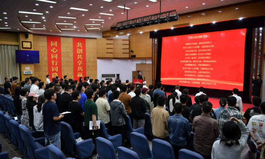 大會間隙,播放了學(xué)院往屆研究生畢業(yè)生錄制的祝福視頻。大會圓滿完成各項既定任務(wù),通過民主投票選舉產(chǎn)生了石油工程學(xué)院第一屆研究生會委員會。石油工程學(xué)院第一屆研究生會委員會全體成員,面向國旗就職宣誓。第一屆研究生會委員會代表張斌向大會作工作展望。最后,大會在全場齊唱的《我為祖國獻(xiàn)石油》中落下帷幕。