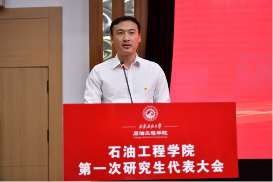 石油工程學(xué)院黨委書記司馬文龍代表學(xué)院黨委向大會的勝利召開表示熱烈祝賀,向全體與會代表致以親切問候。他指出,本次大會是以習(xí)近平新時代中國特色社會主義思想為指導(dǎo),深入學(xué)習(xí)貫徹黨的二十屆三中全會和全國教育大會精神,深刻領(lǐng)會習(xí)近平總書記關(guān)于青年工作的重要思想,認(rèn)真學(xué)習(xí)學(xué)校第三次黨代會精神的一次重要的大會。大會的主要任務(wù)是討論今后一個時期研究生會工作的目標(biāo)方向,更好地完善研究生培養(yǎng)體系,搭建研究生交流溝通平臺,促進(jìn)研究生成長成才,團(tuán)結(jié)帶領(lǐng)全院研究生為建成特色鮮明的高水平教學(xué)研究型大學(xué)積極作為,為實現(xiàn)中華民族偉大復(fù)興中國夢貢獻(xiàn)青春力量。他強調(diào),與會代表要以嚴(yán)謹(jǐn)求實的態(tài)度,認(rèn)真履行職責(zé),圓滿完成大會的各項任務(wù),把本次大會開成民主、和諧、團(tuán)結(jié)、奮進(jìn)的大會。