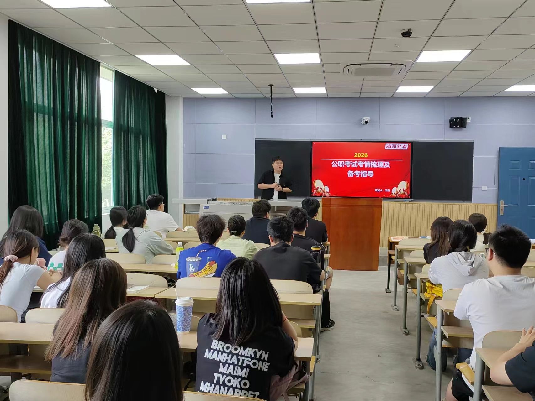 隨后,王蘅圍繞公考趨勢與備考策略展開專題指導(dǎo)。他以歷年數(shù)據(jù)為依托,深入分析了國考、省考、軍隊文職及事業(yè)單位考試的招錄條件、競爭程度以及崗位特點,并為學(xué)生預(yù)測了2026年考情變化趨勢。他指出:“要上岸,選對方向是關(guān)鍵。公職考試沒有最好的,只有最合適的。要結(jié)合自身專業(yè)背景以及未來發(fā)展規(guī)劃合理選擇?!?針對備考痛點,王蘅為學(xué)生詳細(xì)講解了行測和申論的知識框架體系以及備考日程規(guī)劃,為學(xué)生們分享了許多切實有效的方法和技巧,幫助學(xué)生構(gòu)建科學(xué)備考體系。