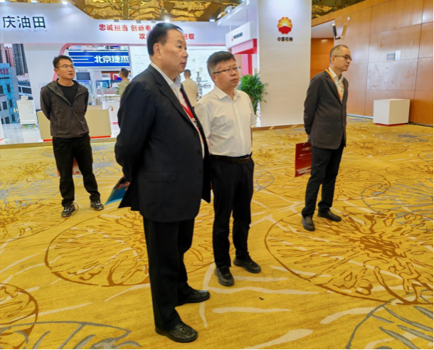 陪同中石協(xié)理事長(zhǎng)劉宏斌、中國(guó)機(jī)械工業(yè)聯(lián)合會(huì)監(jiān)事長(zhǎng)薛一平等參觀科技創(chuàng)新成果展及特色文創(chuàng)展示