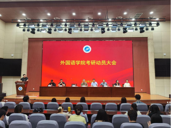為進(jìn)一步激發(fā)學(xué)生的考研熱情,明確考研方向,掌握相關(guān)考研技巧,5月16日中午,外國語學(xué)院在圖書館弘石報告廳召開2025年考研動員大會。學(xué)院黨政領(lǐng)導(dǎo)、英語系主任、翻譯系主任、俄語系主任、輔導(dǎo)員,以及大二、大三全體學(xué)生齊聚一堂,共同開啟這場充滿希望與力量的動員之旅。