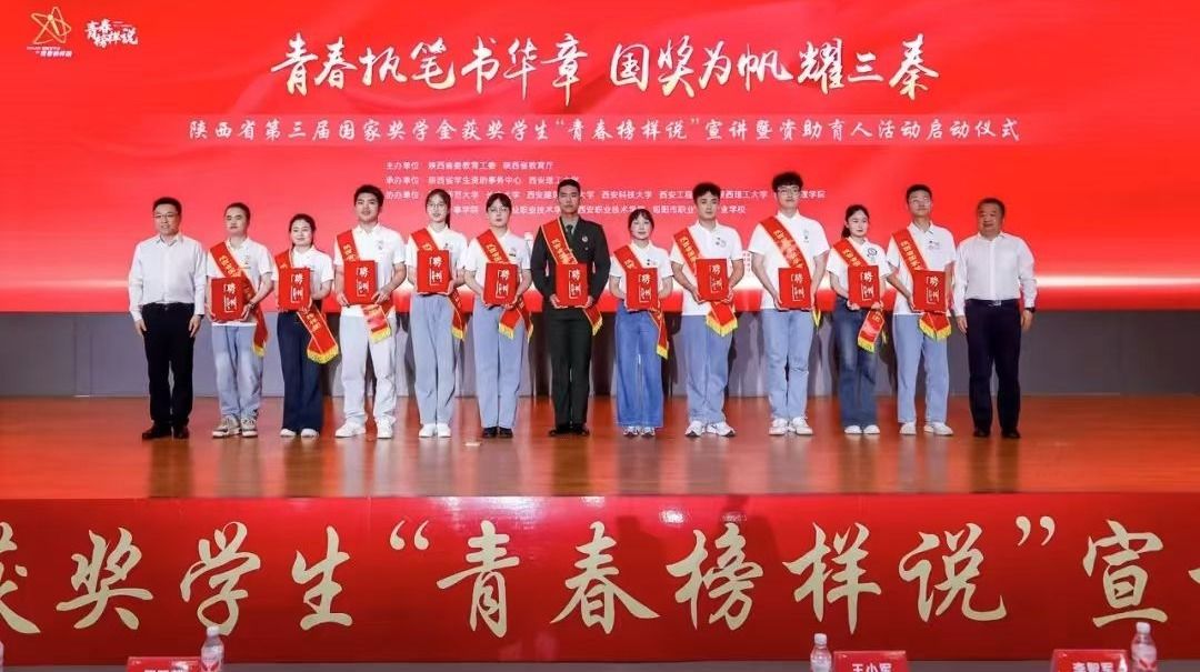 宣講環(huán)節(jié),西安理工大學(xué)耿晶以 “追光之旅” 分享競賽逐夢歷程,呼吁青年扎根祖國需要之處;西安工程大學(xué)梁振宇講述退役復(fù)學(xué)后的堅守擔當,榜樣們用奮斗故事傳遞著拼搏向上的精神力量。