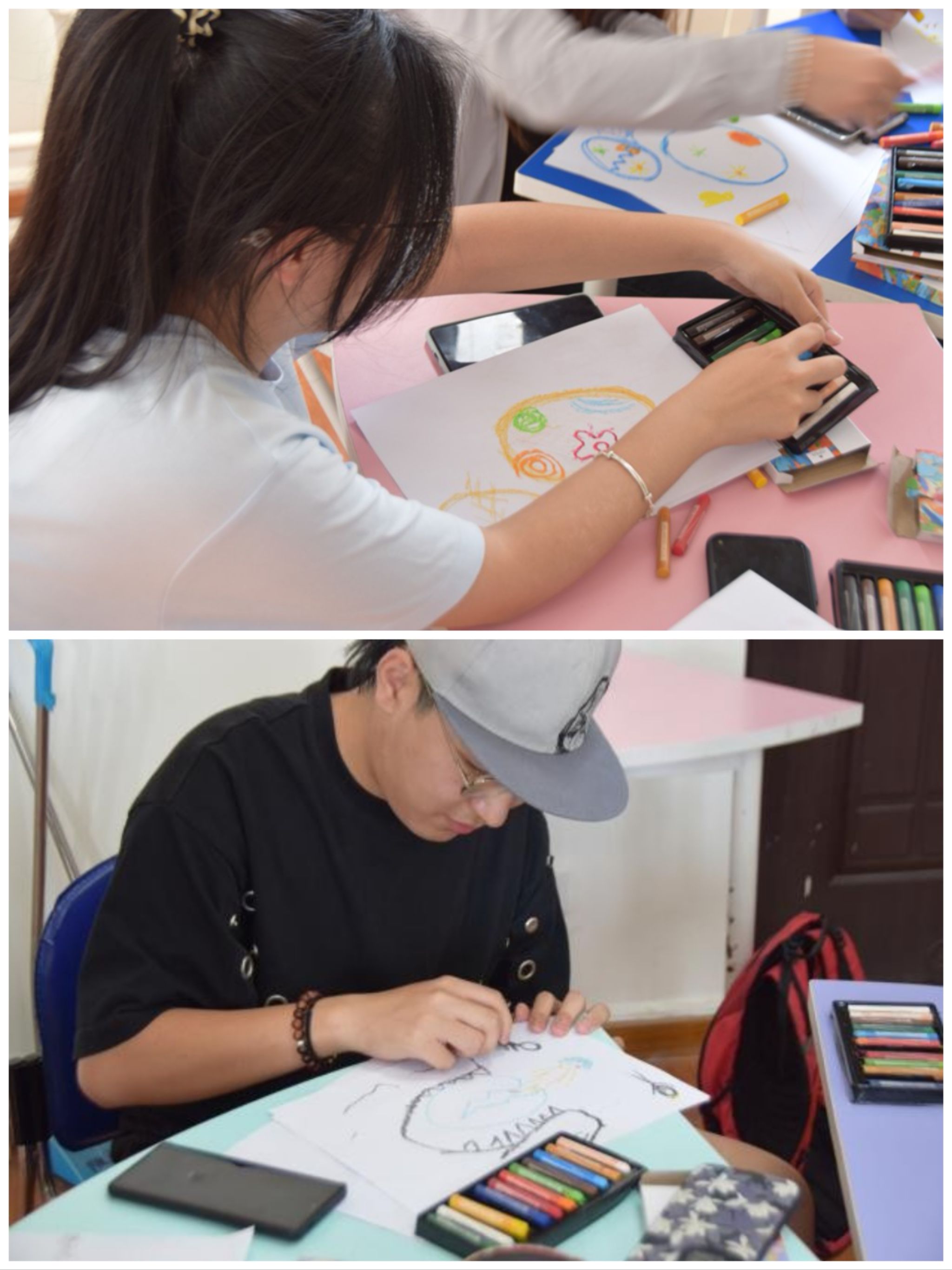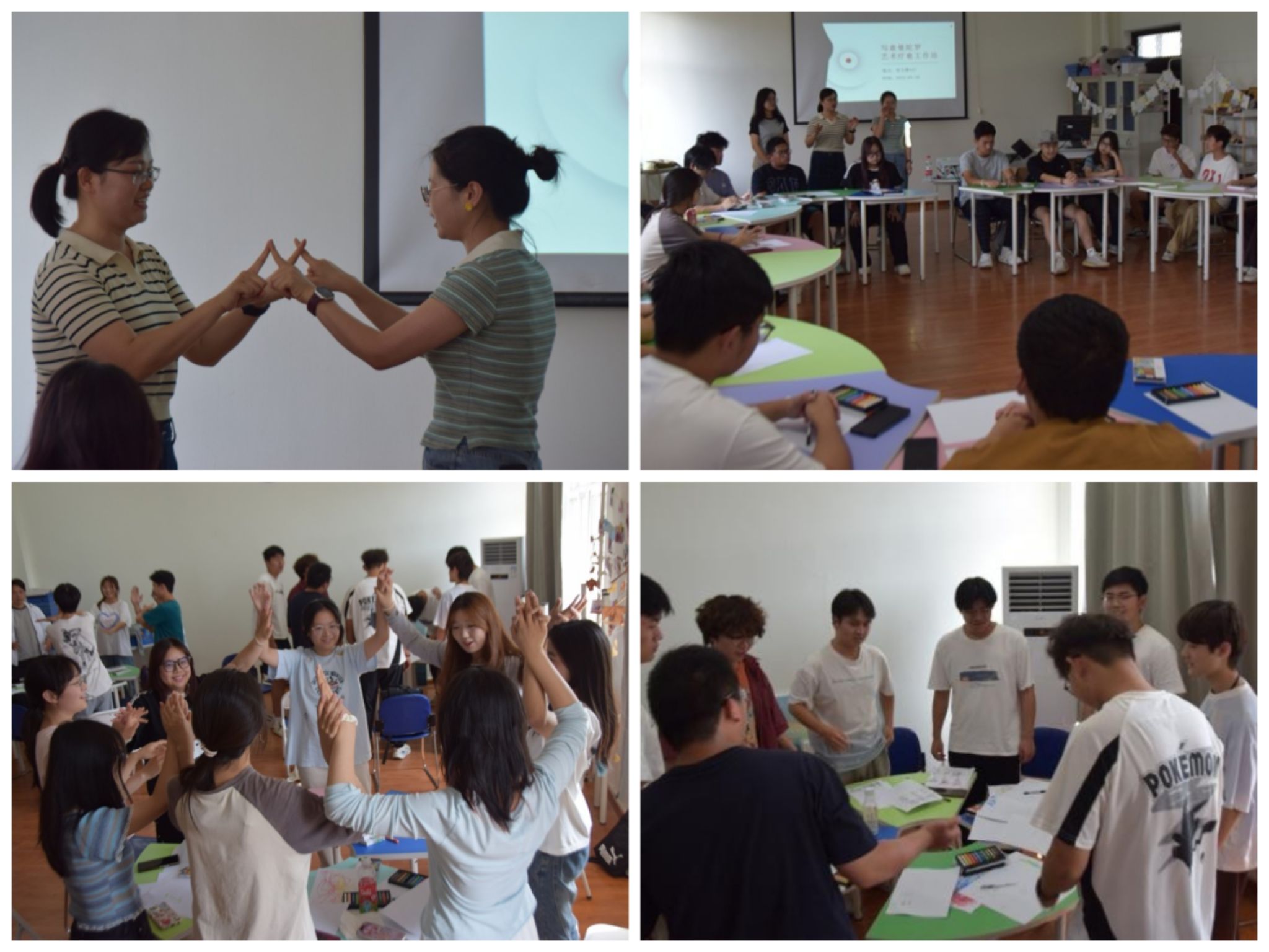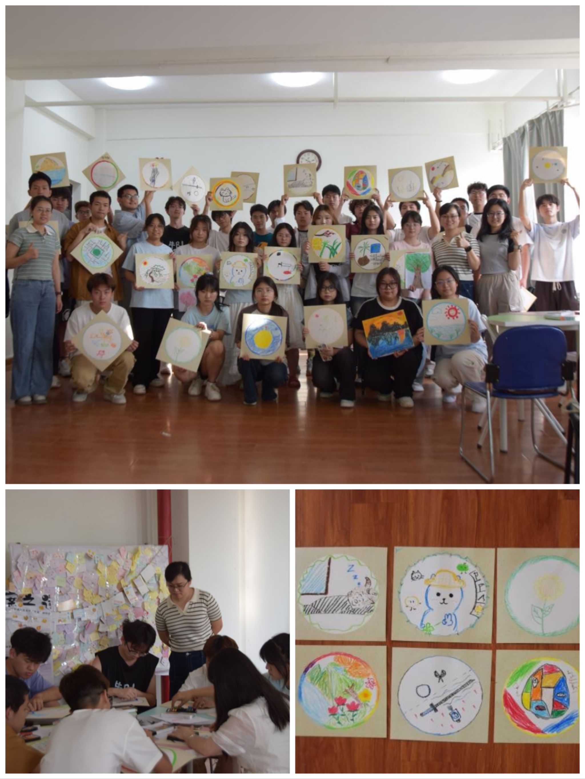 寫(xiě)意曼陀羅藝術(shù)療愈工作坊區(qū)別于傳統(tǒng)心理輔導(dǎo)形式,旨在通過(guò)繪畫(huà)、色彩、故事敘述與團(tuán)體互動(dòng),為學(xué)生提供了一個(gè)安全表達(dá)、深度探索內(nèi)心世界的創(chuàng)新平臺(tái)。本次活動(dòng)分為切土豆”“名之舞”“心靈之樹(shù)”“顏色地圖”“自我探索”“自畫(huà)像等環(huán)節(jié),通過(guò)主持人專(zhuān)業(yè)的引導(dǎo),逐步完成認(rèn)識(shí)自我、認(rèn)識(shí)他人、相互協(xié)作和情感聯(lián)結(jié)的目標(biāo)。