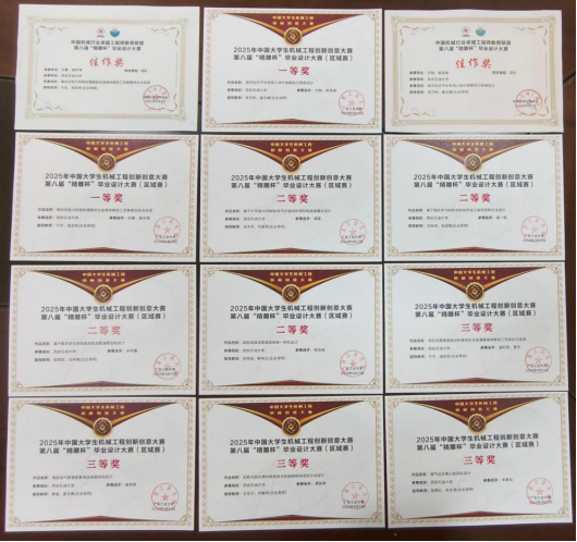 2025年6月1日-2日,由中國機械工程學會、中國機械行業(yè)卓越工程師教育聯(lián)盟主辦,廣東工業(yè)大學承辦的2025年中國大學生機械工程創(chuàng)新創(chuàng)意大賽“精雕杯”畢業(yè)設計全國總決賽在廣東工業(yè)大學順利舉行。大賽經(jīng)過函評、區(qū)域賽、全國決賽等環(huán)節(jié)角逐,我校2件區(qū)域賽一等獎作品直通全國總決賽,并獲得全國佳作獎。本次大賽我校共提交作品20件,其中,獲一等獎2件,二等獎4件,三等獎4件。此次成績是我校學生參加此項賽事以來歷史最好成績。