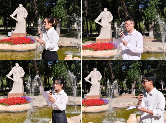 最后,學(xué)院黨委書記高小明給大家講述了一堂微黨課。他講到,在鐵人廣場的鐵人雕像前,舉辦“傳承鐵人精神 爭做西部鐵人”研究生畢業(yè)班黨員主題黨日活動,既是對鐵人精神的崇高致敬,也是對我們即將踏上新征程的畢業(yè)班黨員的一次深刻黨性教育。鐵人王進(jìn)喜,這位新中國石油工業(yè)的奠基人,以他“有條件要上,沒有條件創(chuàng)造條件也要上”的豪邁氣概,為我們樹立了不朽的豐碑。他的愛國情懷、創(chuàng)業(yè)精神、求實態(tài)度和奉獻(xiàn)精神,構(gòu)成了鐵人精神的豐富內(nèi)涵,激勵著一代又一代石油人不斷前行。今天,師生齊聚在這里,重溫入黨誓詞,就是要銘記初心,牢記鐵人為人民服務(wù)的宗旨,將鐵人精神內(nèi)化于心,外化于行。他對全體畢業(yè)黨員提出希望:一是要傳承鐵人精神,堅定理想信念。鐵人精神的核心是愛國和奉獻(xiàn),是面對困難和挑戰(zhàn)時的不屈不撓。作為新時代的青年黨員,要時刻牢記自己的初心和使命,將個人的理想追求融入到國家和民族的事業(yè)中去,為實現(xiàn)中華民族偉大復(fù)興的中國夢貢獻(xiàn)自己的力量。二是要勇?lián)鷷r代責(zé)任,爭做西部鐵人。服務(wù)國家能源戰(zhàn)略,是我們石油人義不容辭的責(zé)任。學(xué)院大部分同學(xué)選擇了在西部就業(yè)、在能源領(lǐng)域就業(yè),希望大家繼承和發(fā)揚“鐵人精神”,牢記“將能源的飯碗牢牢的端在自己手里”,不畏艱難,勇于擔(dān)當(dāng),成為能源戰(zhàn)線上的主力軍。三是要持續(xù)學(xué)習(xí)進(jìn)步,發(fā)揮示范引領(lǐng)希望大家在學(xué)中干、在干中學(xué),養(yǎng)成終身學(xué)習(xí)的好習(xí)慣。每一名黨員要牢記自己的身份和責(zé)任,發(fā)揮黨員先鋒模范作用。要傳承鐵人精神,爭做西部鐵人,用實際行動書寫屬于青年學(xué)子的精彩篇章!