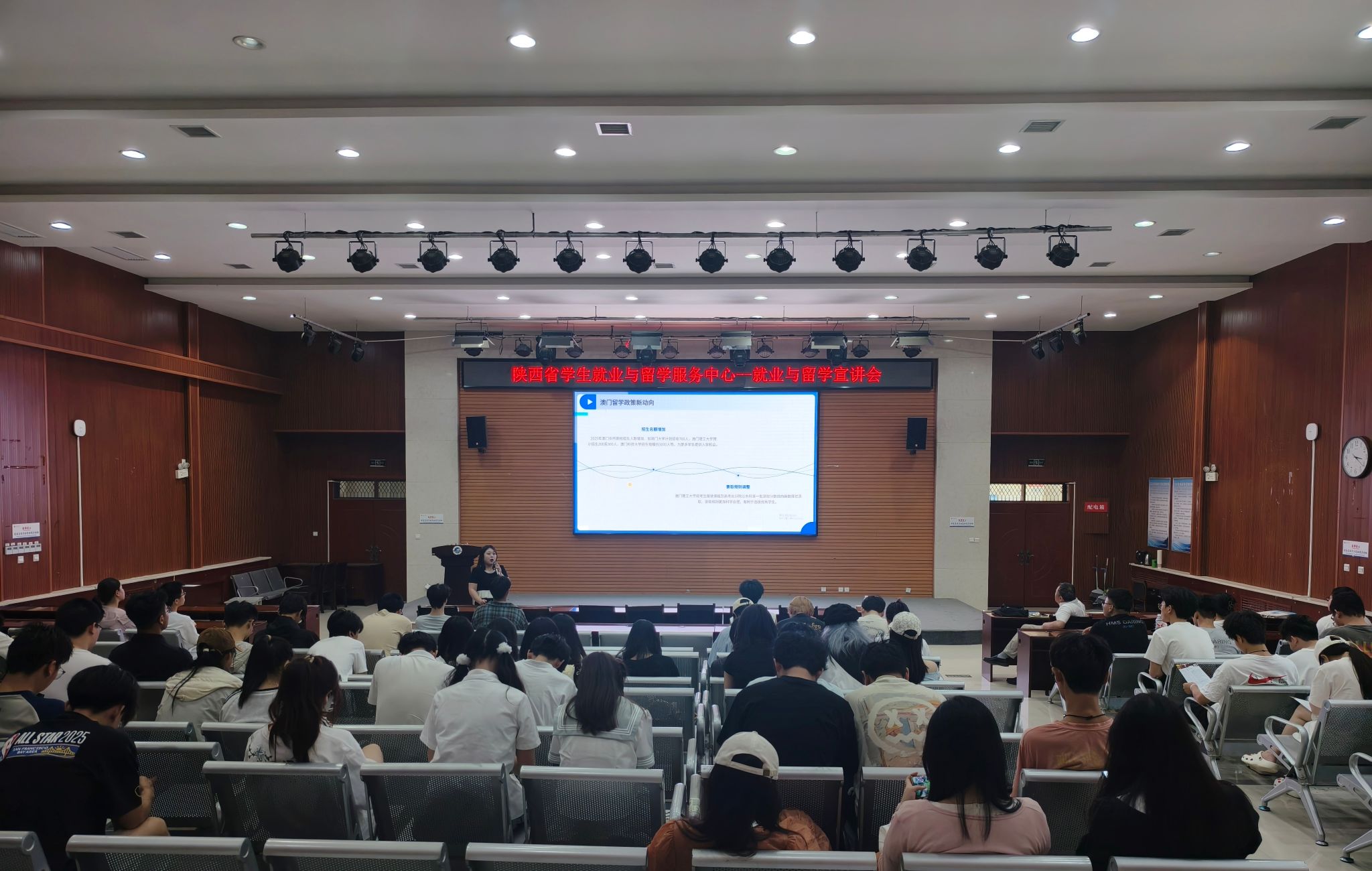 6月5日,學(xué)校就業(yè)創(chuàng)業(yè)指導(dǎo)中心聯(lián)合陜西省學(xué)生就業(yè)與留學(xué)服務(wù)中心在鄠邑校區(qū)崇文樓118報(bào)告廳舉辦就業(yè)留學(xué)政策宣講會,來自全校各年級的200余名學(xué)生參加活動。