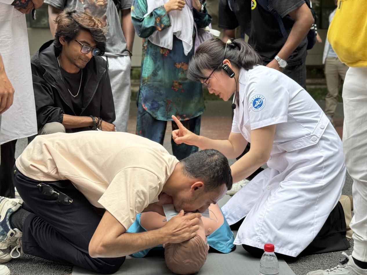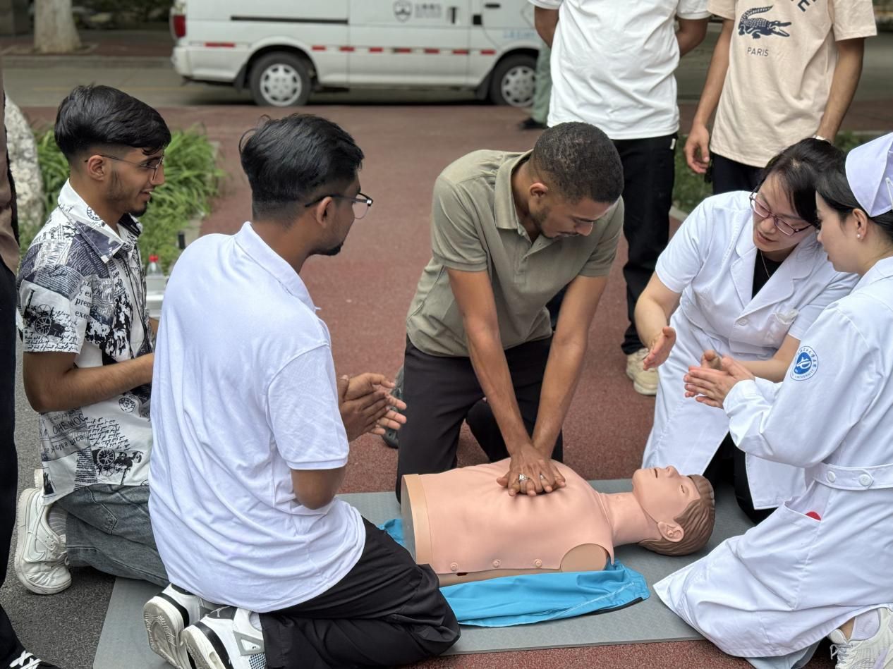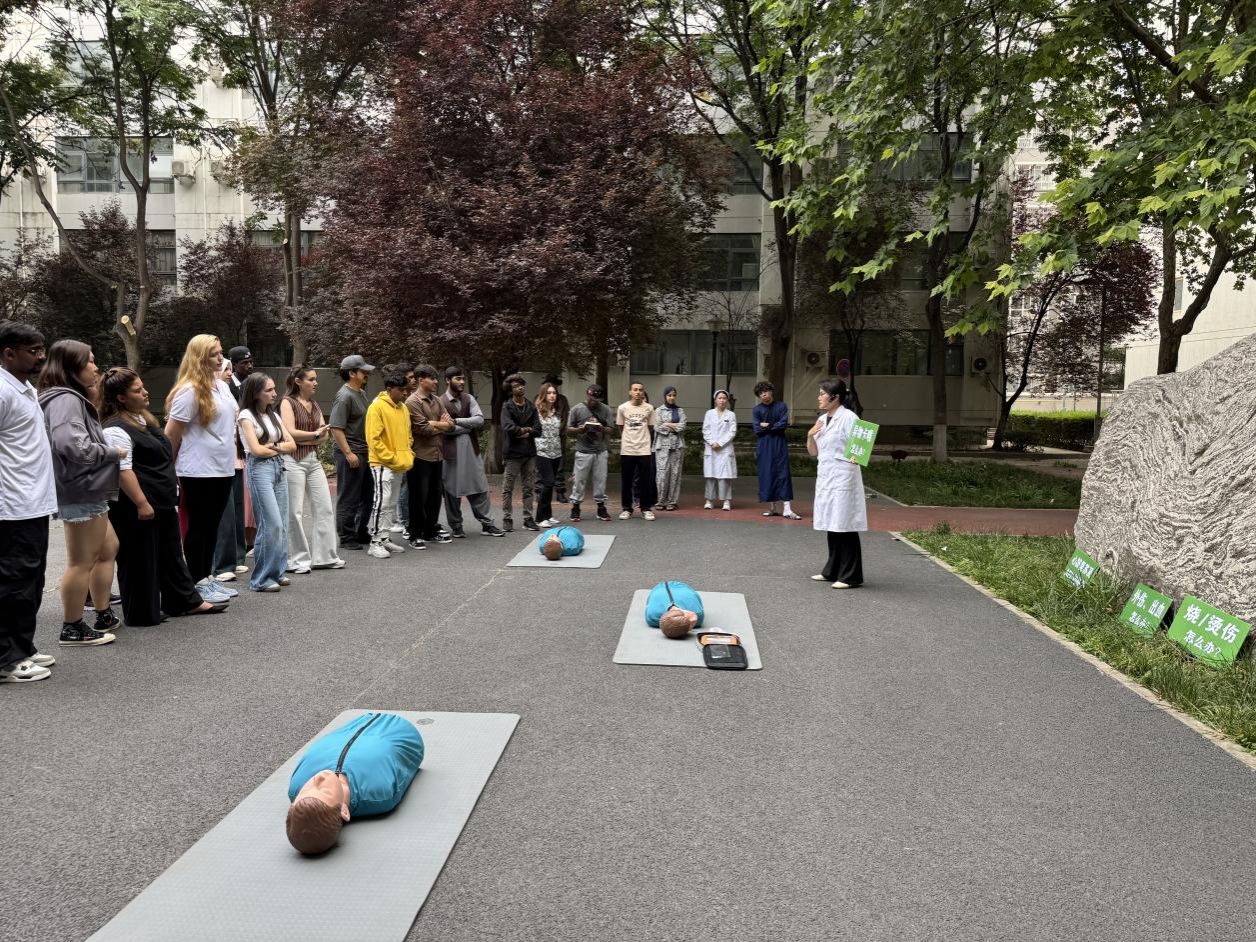 2025年6月5日上午,國(guó)際教育學(xué)院聯(lián)合校醫(yī)院在明德校區(qū)6號(hào)樓前廣場(chǎng)成功舉辦應(yīng)急救護(hù)專題培訓(xùn)活動(dòng)。培訓(xùn)特邀校醫(yī)院中國(guó)紅十字會(huì)認(rèn)證救護(hù)師宋彥霞、譚亞護(hù)士以及李純護(hù)士現(xiàn)場(chǎng)講授,學(xué)院輔導(dǎo)員及20國(guó)40余名留學(xué)生積極參訓(xùn)。