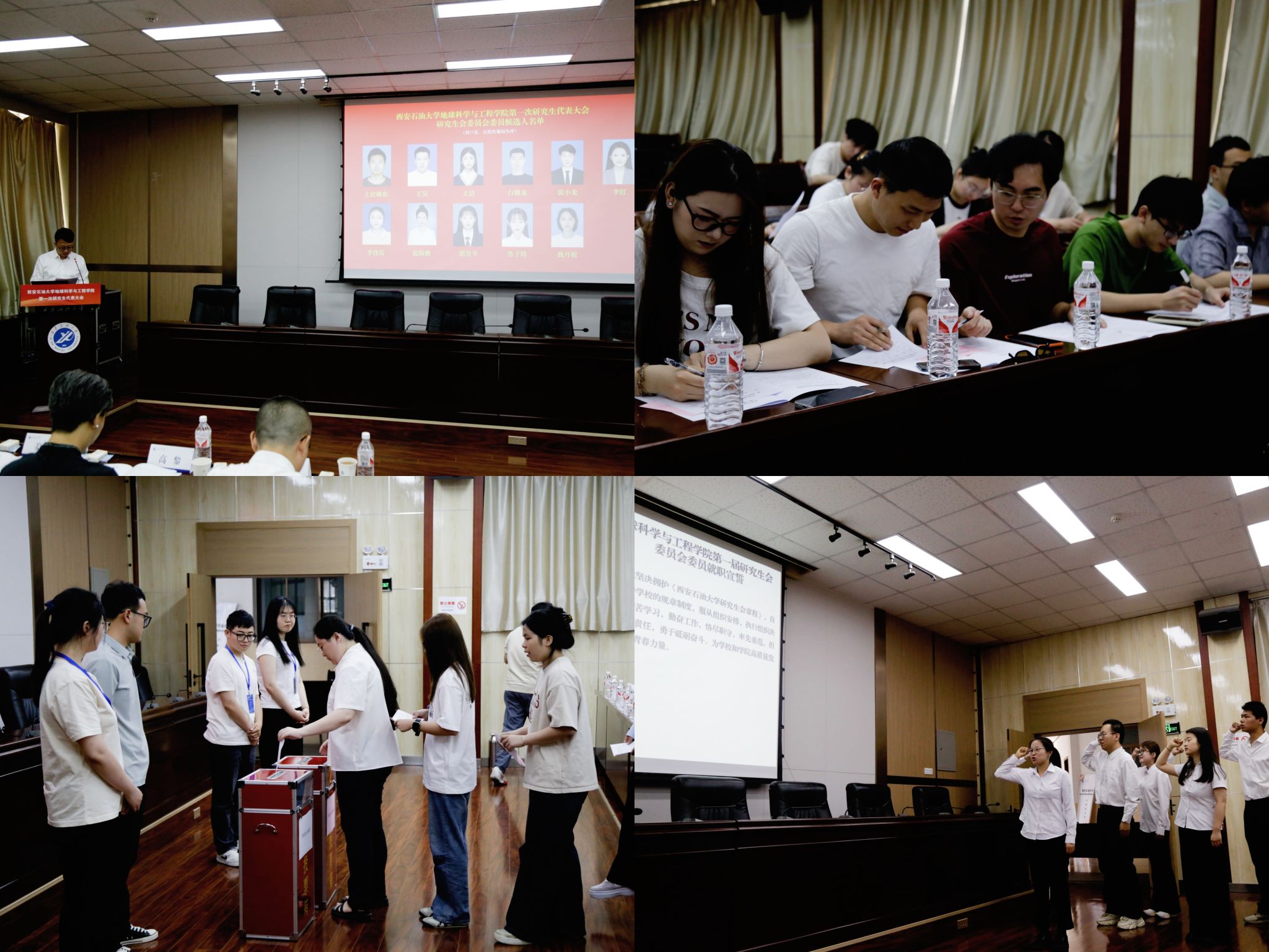 大會圓滿完成各項既定任務(wù),通過民主投票選舉產(chǎn)生了地球科學(xué)與工程學(xué)院第一屆研究生會委員會及主席團(tuán)成員。地球科學(xué)與工程學(xué)院第一屆研究生會委員會全體成員,面向團(tuán)旗就職宣誓。第一屆研究生會委員會代表范斯雅向大會作工作展望。最后,大會在全場齊唱的西安石油大學(xué)校歌《輝煌明天》中落下帷幕。會后,全體學(xué)生代表及參會嘉賓合影留念。