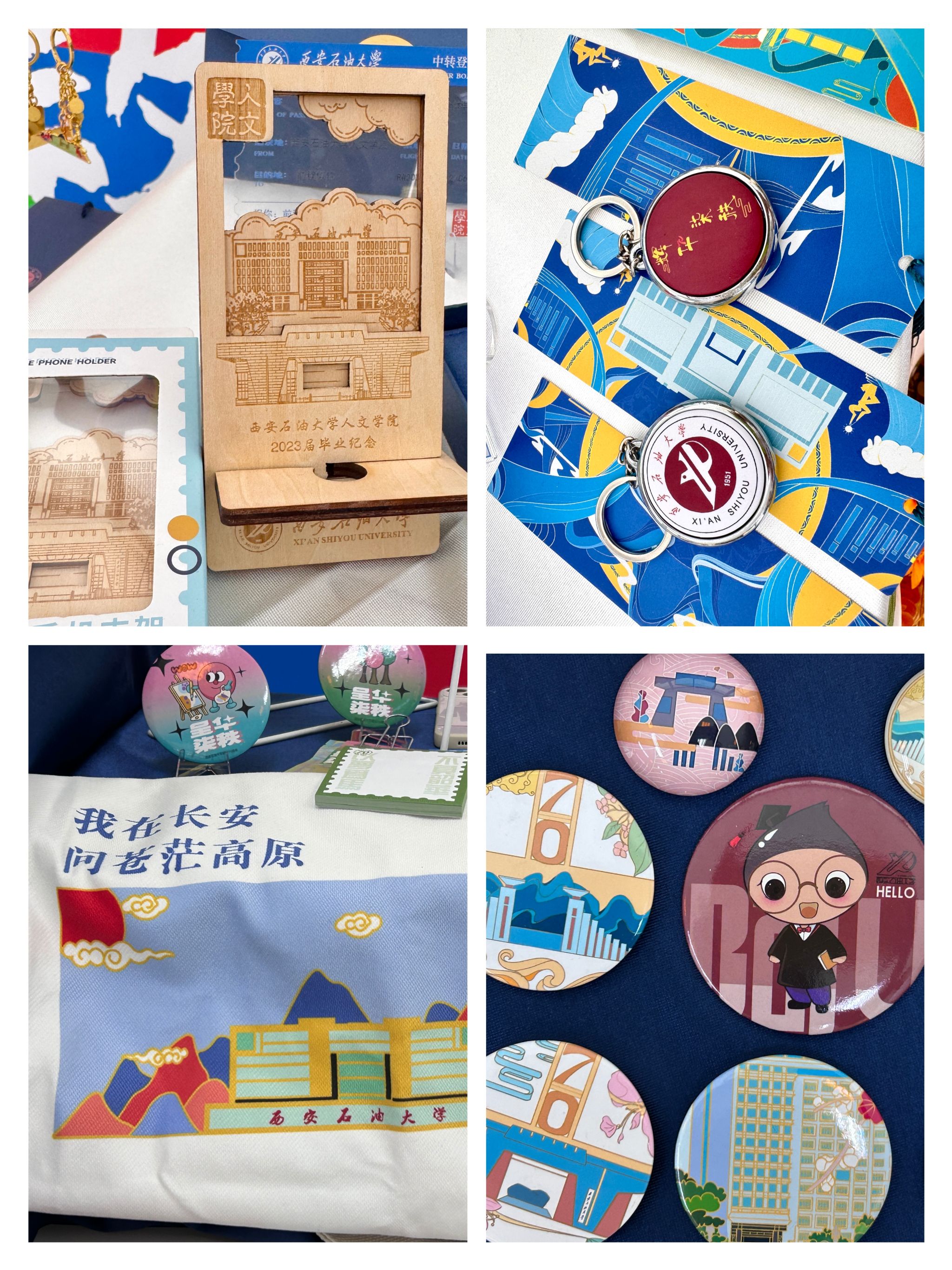 無(wú)人文創(chuàng)集市匯集了人文學(xué)院學(xué)生精心設(shè)計(jì)的各類主題文創(chuàng)作品,涵蓋學(xué)習(xí)用品、生活好物、藝術(shù)裝飾等多個(gè)品類。展臺(tái)上,印有校訓(xùn)、校園風(fēng)景的定制筆記本、書簽、明信片等文具類產(chǎn)品兼具實(shí)用性與紀(jì)念意義;以學(xué)校標(biāo)志性建筑為靈感的徽章、鑰匙扣、帆布包等文創(chuàng)周邊,展現(xiàn)了學(xué)子對(duì)校園的深厚情感;還有學(xué)生手繪的原創(chuàng)IP形象衍生品等藝術(shù)創(chuàng)作,將西石大的文化底蘊(yùn)與青春創(chuàng)意完美融合。值得一提的是,許多作品融入了“鐵人精神”“石油特色”等學(xué)校特有元素,體現(xiàn)了學(xué)生們對(duì)學(xué)校歷史與精神的深刻理解,也傳遞出新時(shí)代青年傳承校風(fēng)、為校爭(zhēng)光的決心。