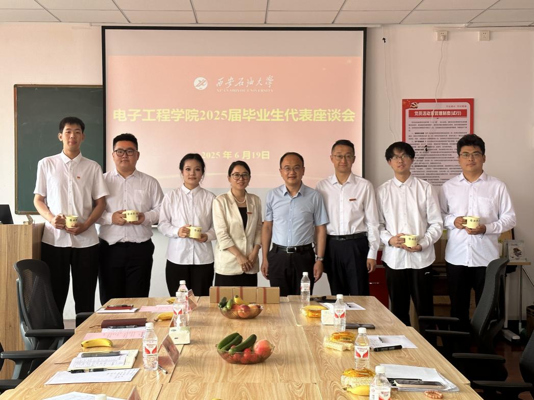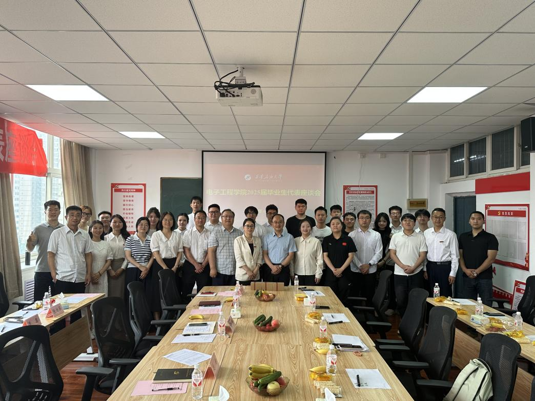 6月19日上午,電子工程學(xué)院2025屆畢業(yè)生座談會在雁塔校區(qū)東方石油樓905會議室召開。副校長趙健出席并講話。學(xué)院黨政領(lǐng)導(dǎo)潘娜、芮執(zhí)根、任志平,各系教師代表、畢業(yè)班輔導(dǎo)員、20名各專業(yè)畢業(yè)生代表參加會議。學(xué)院黨委副書記芮執(zhí)根主持座談會。