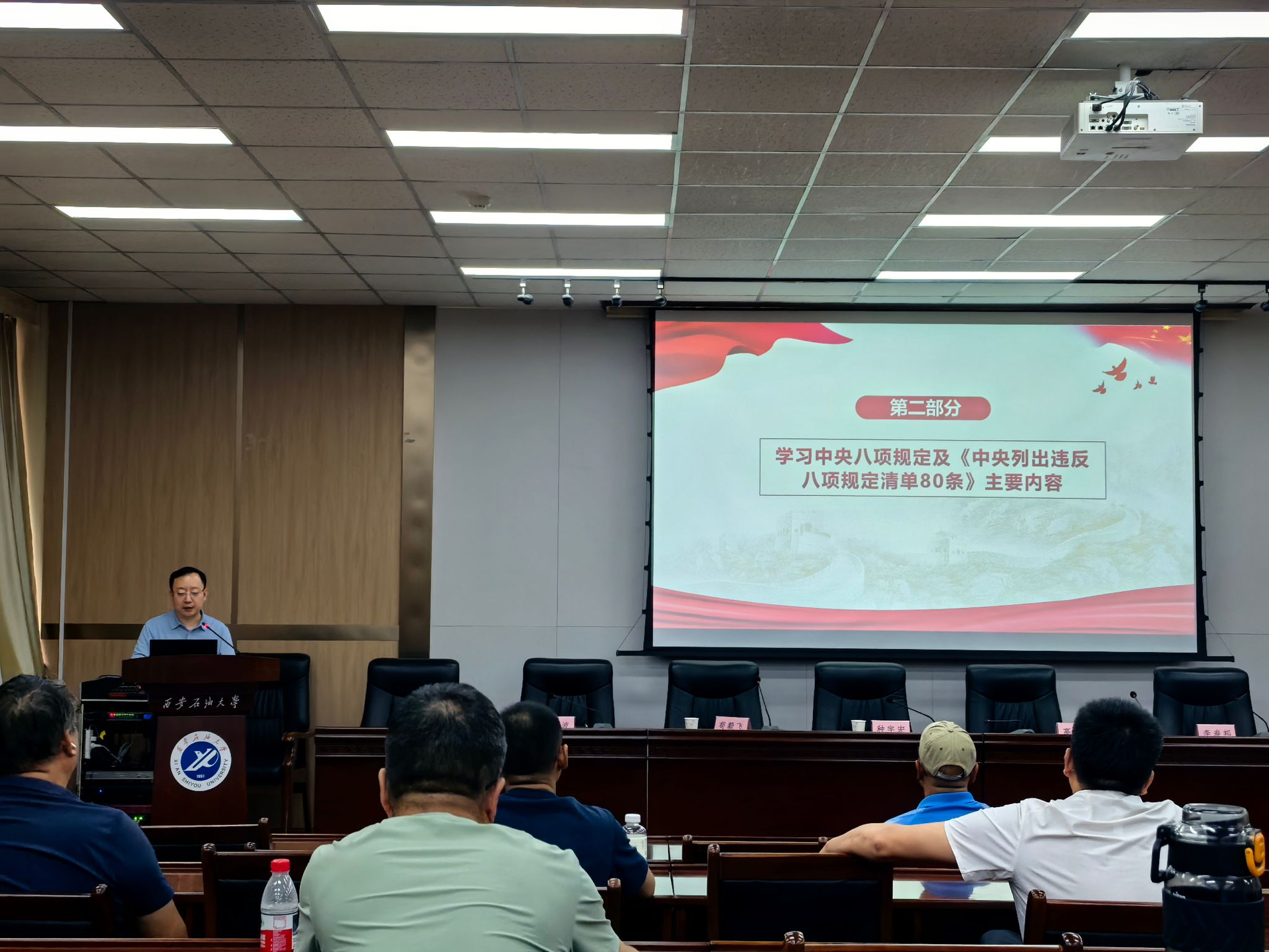 為深入貫徹落實(shí)中央八項(xiàng)規(guī)定精神,進(jìn)一步加強(qiáng)教師黨員的作風(fēng)建設(shè),提升教師隊(duì)伍的紀(jì)律意識(shí)和黨性修養(yǎng),6月20日下午,副校長種宇宏在雁塔校區(qū)會(huì)議中心第五會(huì)議室為體育學(xué)院教工黨員講授題為《學(xué)習(xí)中央八項(xiàng)規(guī)定精神 筑牢廉潔自律防線》專題黨課,學(xué)院領(lǐng)導(dǎo)班子成員、教工黨支部書記、科級(jí)干部以及全體教工黨員參加。會(huì)議由學(xué)院黨總支書記茍毅飛主持。