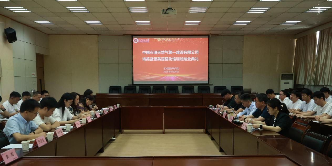 6月26日下午,區(qū)域國別研究院在雁塔校區(qū)會議中心第三會議室舉辦了中國石油天然氣第一建設(shè)有限公司“精英藍領(lǐng)”國際化能力培訓(xùn)班結(jié)業(yè)典禮。中國石油天然氣第一建設(shè)有限公司總經(jīng)理助理劉明國、總經(jīng)理助理兼國際事業(yè)部經(jīng)理張俊生、人力資源部副經(jīng)理王瑜、員工培訓(xùn)主管唐波、區(qū)域國別研究院執(zhí)行院長劉輝、培訓(xùn)班部分任課教師和全體學(xué)員參加了結(jié)業(yè)典禮,結(jié)業(yè)典禮由區(qū)域國別研究院辦公室副主任陶李主持。