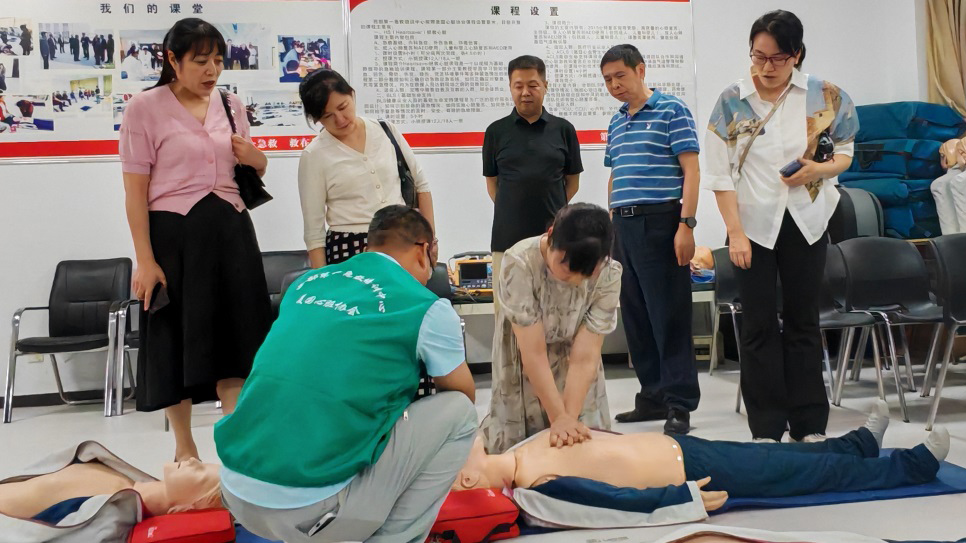 當(dāng)日下午,校醫(yī)院一行首站抵達(dá)西安培華學(xué)院醫(yī)院。院長李旭軍熱情接待并介紹了醫(yī)院的整體情況。在李旭軍院長的引領(lǐng)下,先后參觀了門診區(qū)域,了解智慧醫(yī)療系統(tǒng)應(yīng)用與標(biāo)準(zhǔn)化應(yīng)急流程,參觀了西北地區(qū)首個(gè)與美國心臟協(xié)會(huì)共建的急救培訓(xùn)中心、干細(xì)胞生物實(shí)驗(yàn)室。座談中,雙方圍繞高校醫(yī)療服務(wù)特色模式開展深入探討,培華學(xué)院醫(yī)院的創(chuàng)新服務(wù)為校醫(yī)院帶來新思路。