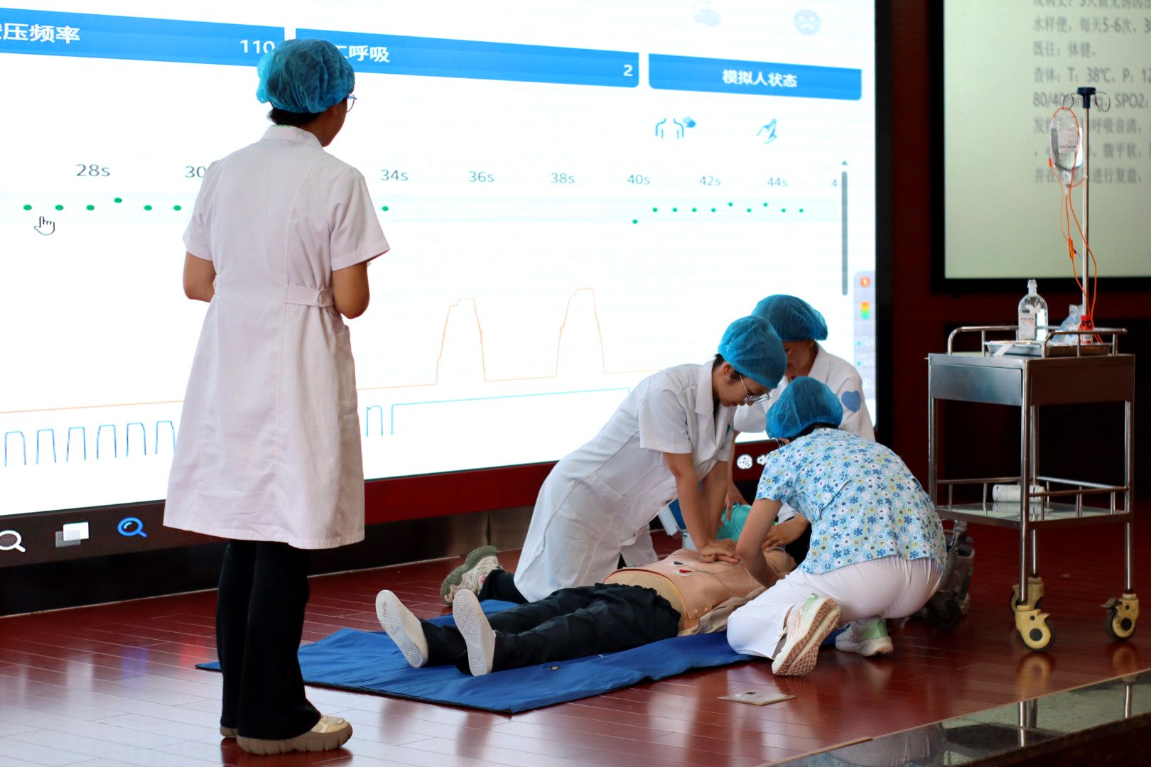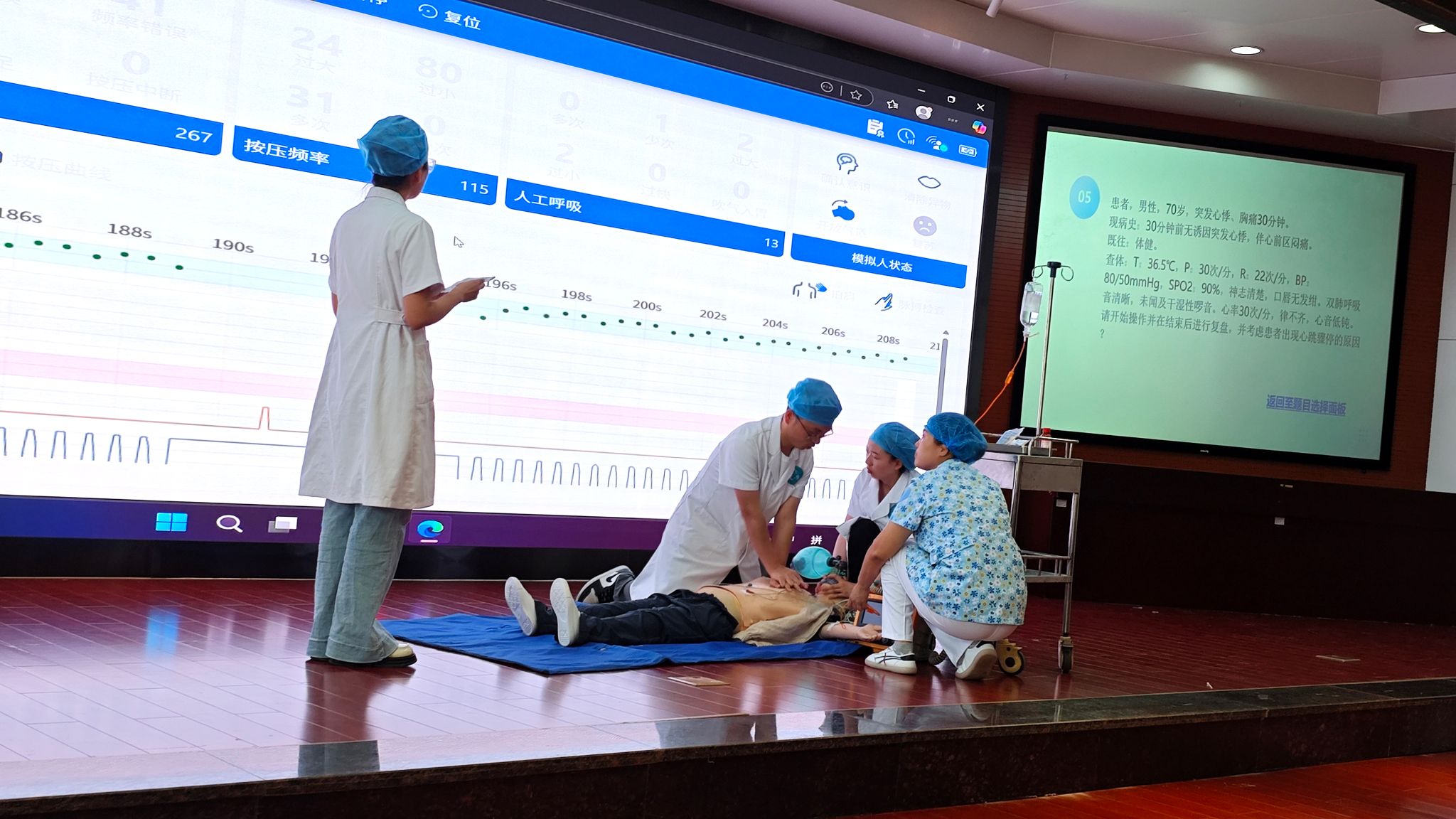 本次大賽設(shè)置雙人組與團(tuán)體組兩大競(jìng)賽項(xiàng)目:雙人組聚焦心肺復(fù)蘇理論知識(shí)考核與實(shí)戰(zhàn)技能操作,著重檢驗(yàn)基礎(chǔ)急救能力的規(guī)范性;4人團(tuán)體組則通過(guò)模擬真實(shí)急救場(chǎng)景,重點(diǎn)考察團(tuán)隊(duì)在應(yīng)對(duì)急危重癥時(shí)的臨場(chǎng)應(yīng)變能力與協(xié)作配合水平。經(jīng)過(guò)全天角逐,校醫(yī)院4支隊(duì)伍以連貫流暢的操作流程、高效精準(zhǔn)的團(tuán)隊(duì)協(xié)作,贏得裁判組一致高度評(píng)價(jià),在各競(jìng)賽組別中均取得優(yōu)異成績(jī)。