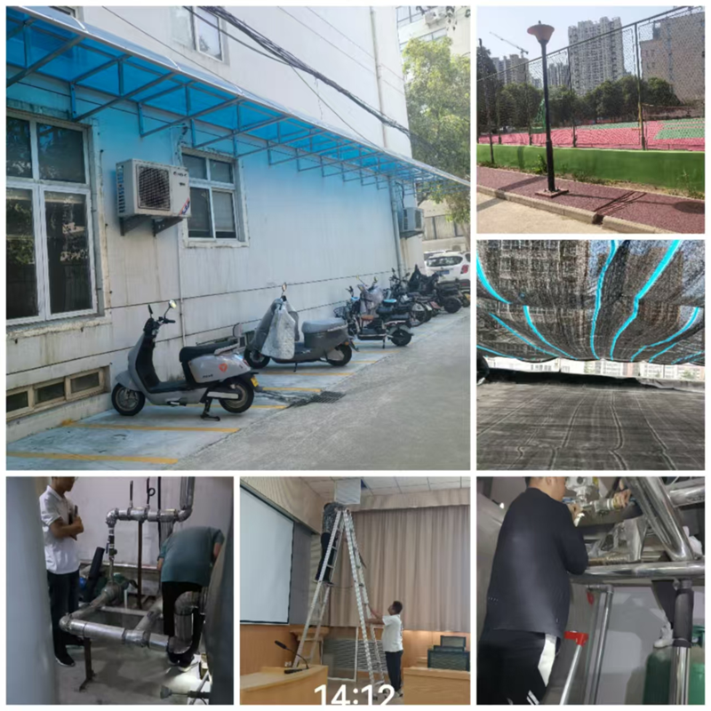 在環(huán)境治理方面,修補了明德校區(qū)籃球場、網(wǎng)球場墻圍,裁減了校區(qū)影響通行和安全的綠植樹木,建成了學員和職工電動車車棚,安裝了餐廳頂樓防曬網(wǎng),維修了和更換了鍋爐房、空凋、廚房制冷設(shè)備、供電設(shè)備等設(shè)施設(shè)備50余處。