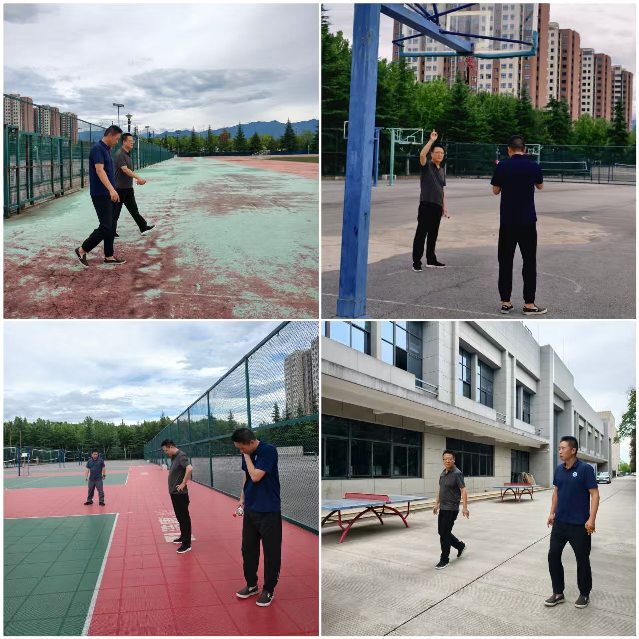 在安全專項(xiàng)檢查中,學(xué)院對(duì)鄠邑校區(qū)西體育場(chǎng)、籃球場(chǎng)、排球場(chǎng)、網(wǎng)球場(chǎng)、羽毛球場(chǎng)、素質(zhì)拓展基地等重要區(qū)域進(jìn)行了細(xì)致的安全隱患排查。檢查內(nèi)容涵蓋場(chǎng)地設(shè)施結(jié)構(gòu)穩(wěn)固性、用電安全、消防設(shè)備完好性、防護(hù)設(shè)施可靠性以及場(chǎng)地器材維護(hù)狀況等多個(gè)關(guān)鍵環(huán)節(jié)。劉小波說(shuō),校園安全是學(xué)校高質(zhì)量發(fā)展的基石,我們要以“時(shí)時(shí)放心不下”的責(zé)任感抓好隱患排查,為學(xué)校發(fā)展貢獻(xiàn)體育力量。李壽邦結(jié)合檢查情況,要求學(xué)院相關(guān)負(fù)責(zé)人、場(chǎng)地管理員要定期巡查,對(duì)發(fā)現(xiàn)的老化區(qū)域要設(shè)置警戒標(biāo)識(shí),并及時(shí)上報(bào)學(xué)校,組織更換,確保師生使用安全。