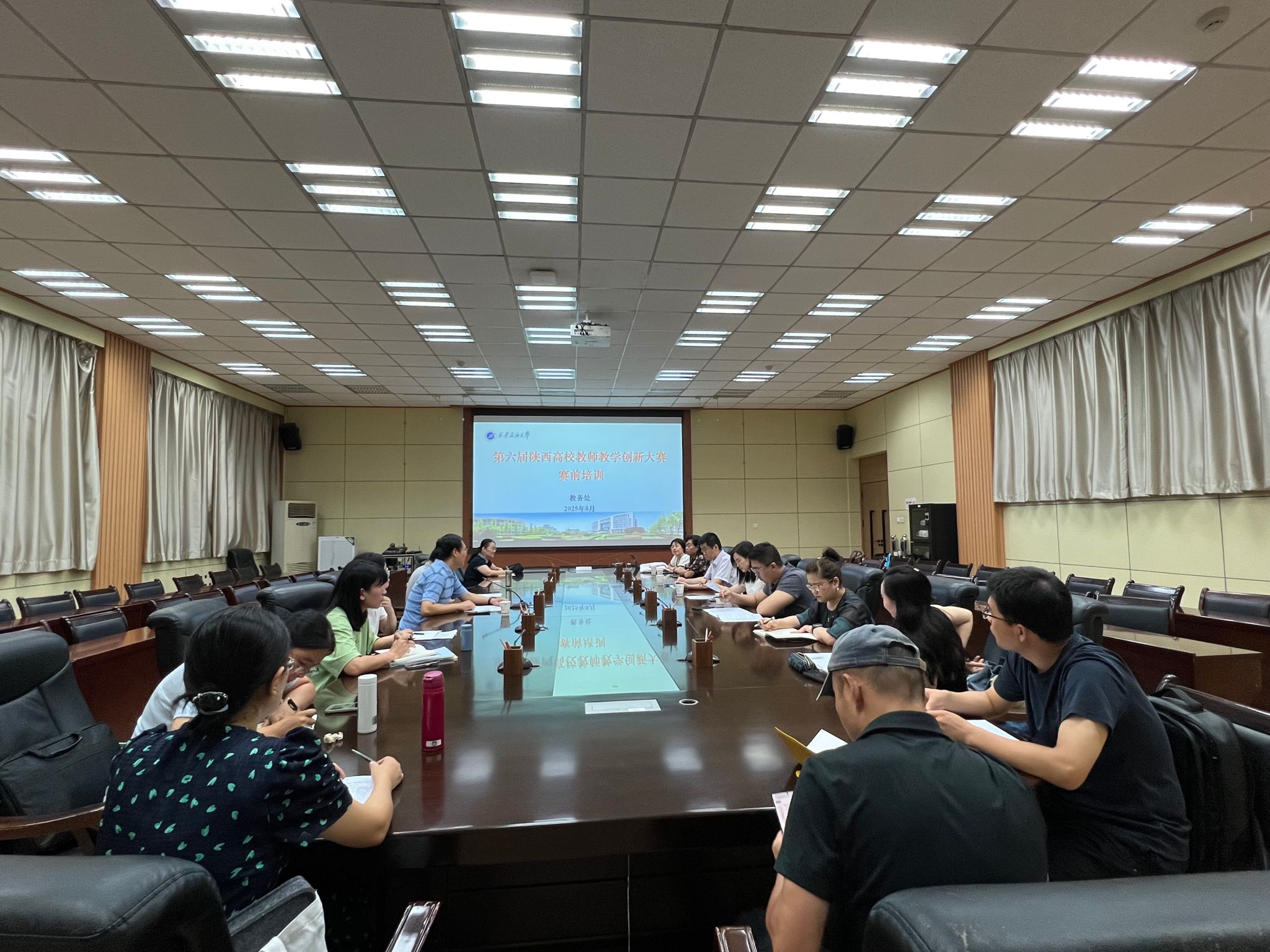為深入學(xué)習(xí)貫徹全國教育大會精神,落實(shí)《教育強(qiáng)國建設(shè)規(guī)劃綱要(2024—2035 年)》,堅(jiān)持“以賽促教、以賽促學(xué)、以賽促改、以賽促研”,進(jìn)一步提升我校教師教學(xué)競賽水平,助力參賽教師積極備戰(zhàn)教師教學(xué)創(chuàng)新大賽等教學(xué)競賽。8月15日,我校舉辦第六屆陜西高校教師教學(xué)創(chuàng)新大賽賽前培訓(xùn)。來自我校8個學(xué)院的10名教師參加活動,培訓(xùn)由教務(wù)處處長張益主持。