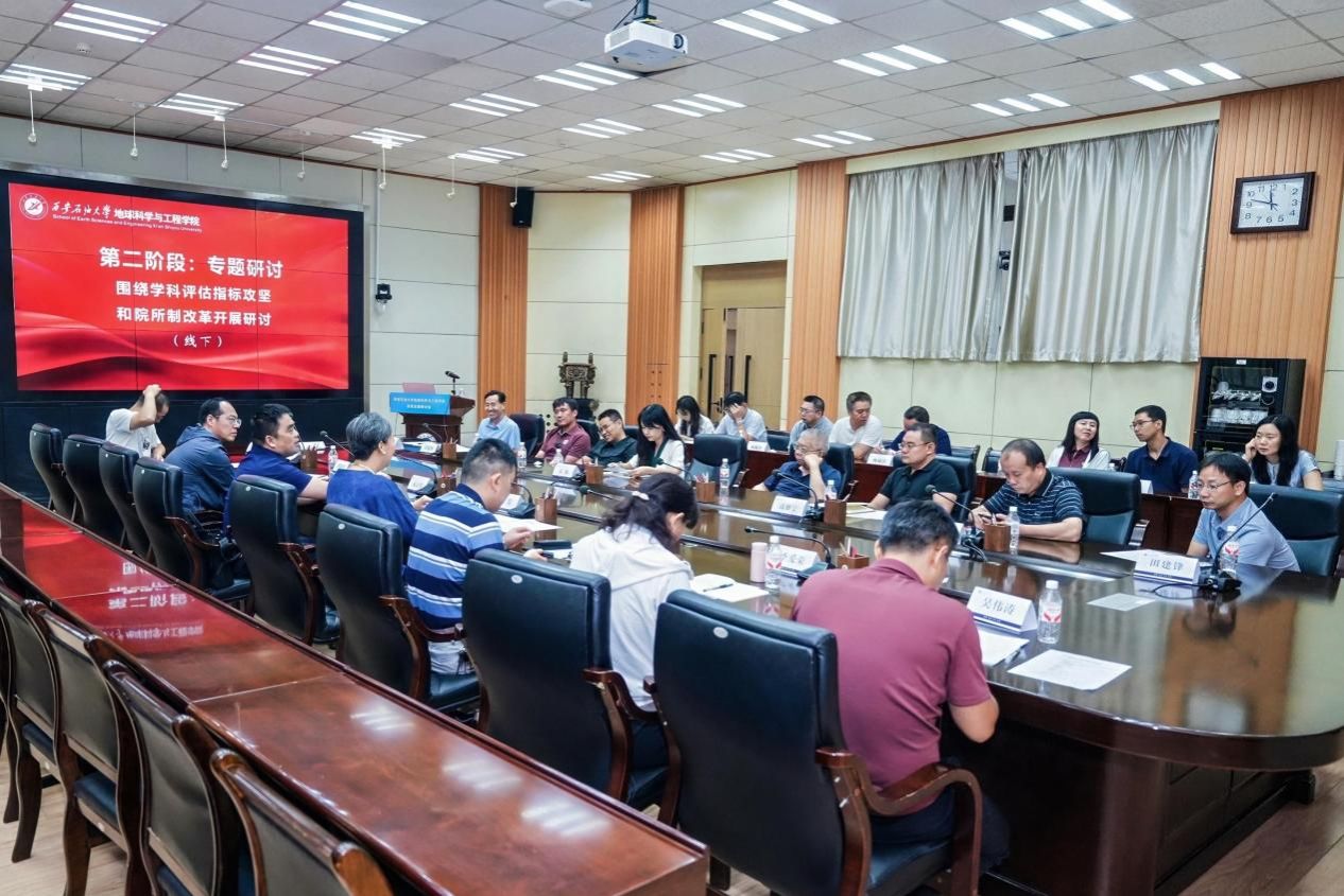 藍(lán)圖聚力,部署攻堅(jiān)任務(wù),激活改革發(fā)展“新動能”。8月10日上午,地球科學(xué)與工程學(xué)院改革發(fā)展研討會在雁塔校區(qū)第二會議室以線上線下聯(lián)動方式召開。高黎主持會議并作動員講話,通過四組關(guān)鍵指標(biāo)警示數(shù)據(jù)對比,分析制約學(xué)院發(fā)展的三大結(jié)構(gòu)性矛盾,結(jié)合第六輪學(xué)科評估五大顛覆性變化,強(qiáng)調(diào)聚焦院所制改革等重點(diǎn)任務(wù),要求進(jìn)一步提高站位抓認(rèn)識,迅速行動抓落實(shí),突出重點(diǎn)抓攻堅(jiān),同步壓實(shí)責(zé)任清單,守好安全穩(wěn)定底線,以“功成不必在我”的境界和“功成必定有我”的擔(dān)當(dāng)推動學(xué)院發(fā)展邁上新臺階。宋立軍傳達(dá)學(xué)校學(xué)科建設(shè)工作調(diào)度會精神,以“深化地學(xué)一流學(xué)科建設(shè) 推動學(xué)院高質(zhì)量發(fā)展”為題,從學(xué)科發(fā)展概況、學(xué)科發(fā)展規(guī)劃和近期重點(diǎn)工作三個(gè)方面,通報(bào)學(xué)院學(xué)科建設(shè)總體進(jìn)展和院所制改革思路。副院長沈鴻雁通報(bào)近期教學(xué)重點(diǎn)工作,解讀學(xué)校科研達(dá)標(biāo)工作和學(xué)科競賽等學(xué)校重要文件精神。副院長曹靜杰解讀學(xué)?!皩W(xué)科達(dá)標(biāo)年”重點(diǎn)工作,并就推進(jìn)學(xué)院“十五五”規(guī)劃編制、第六輪學(xué)科評估籌備工作作重點(diǎn)部署。線下會議同步圍繞“學(xué)科評估指標(biāo)攻堅(jiān)”“院所制改革”開展研討。學(xué)院黨委委員、領(lǐng)導(dǎo)班子成員,學(xué)術(shù)分委員會成員,學(xué)位評定分委員會委員,工會委員會委員,各系黨支部書記(副書記)、主任(副主任),各學(xué)科、專業(yè)負(fù)責(zé)人,各辦公室主任(副主任)等線下參會。全院其他教職工線上參會。
