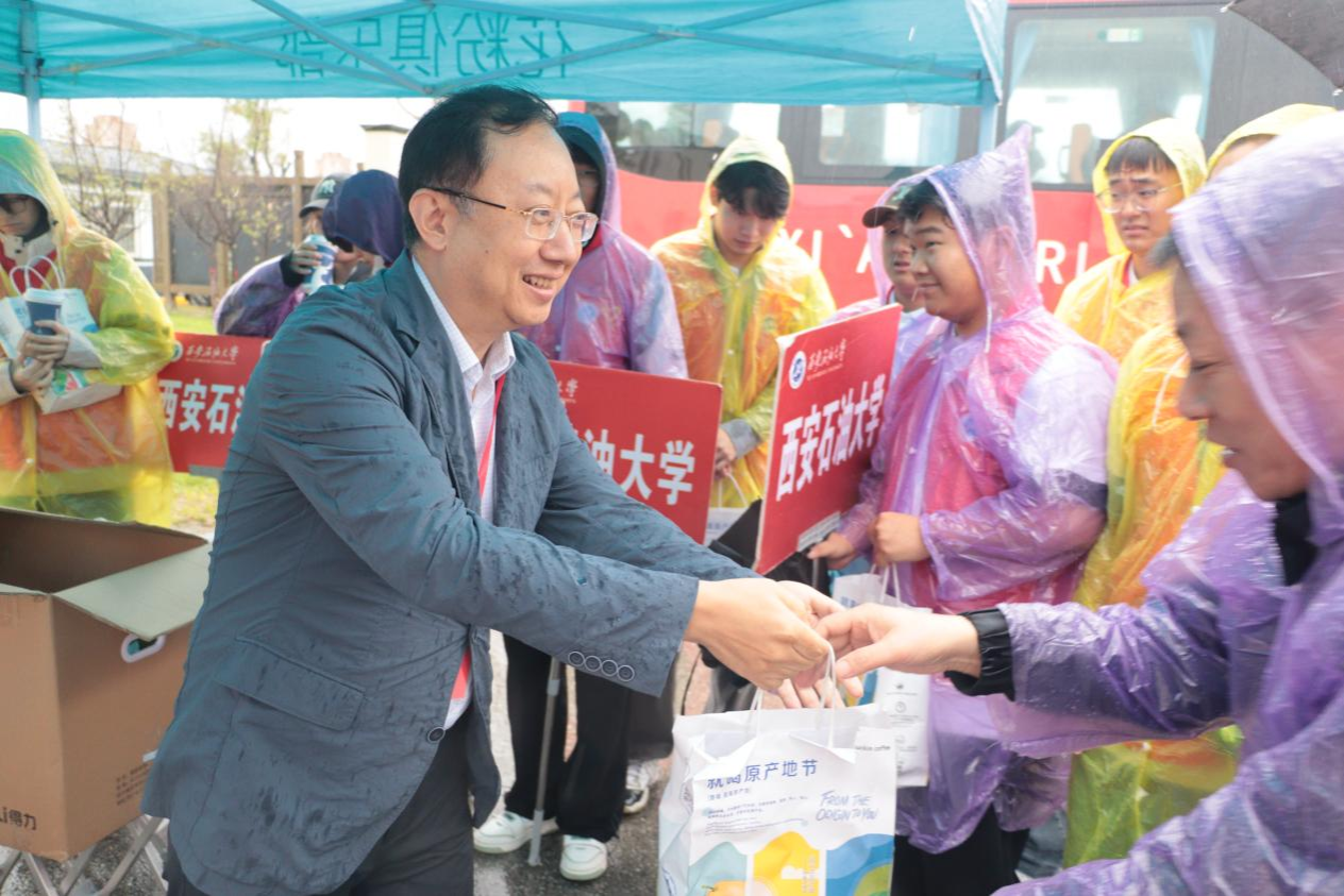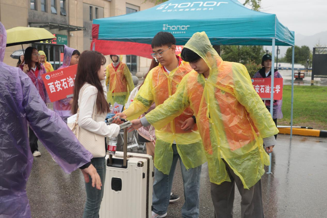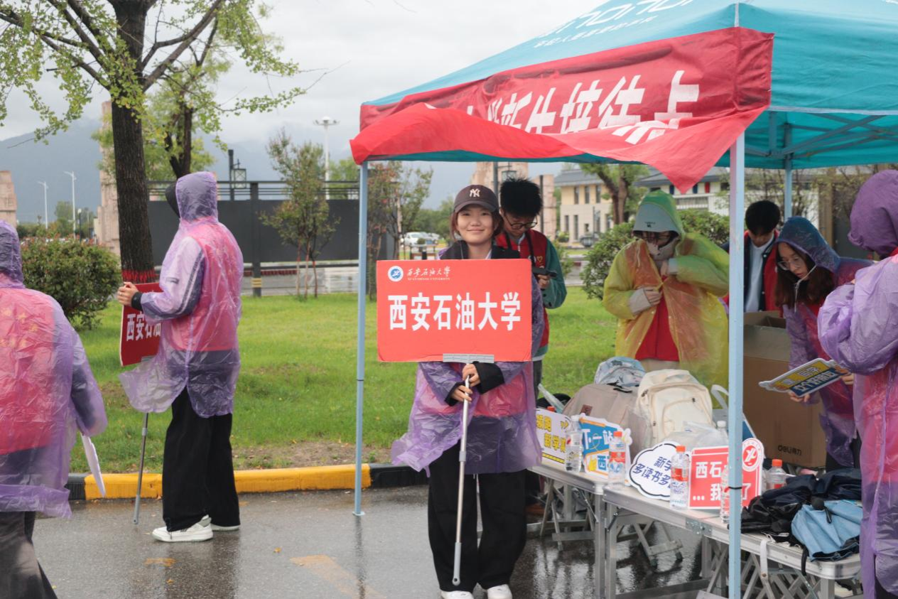 鄠邑高鐵站作為新生抵達的重要點位,整體迎新志愿工作任務(wù)繁重、節(jié)奏緊張。志愿師生們穿梭在雨中,耐心引導、搬運行李,全身濕透毫無怨言。種宇宏詳查看了迎新志愿服務(wù)的工作現(xiàn)場,詳細了解了迎新工作情況,對大家有序的組織、飽滿的熱情和耐心的服務(wù)給予了高度肯定,同時也對大家不懼風雨、堅守崗位的奉獻精神給予了高度贊揚。