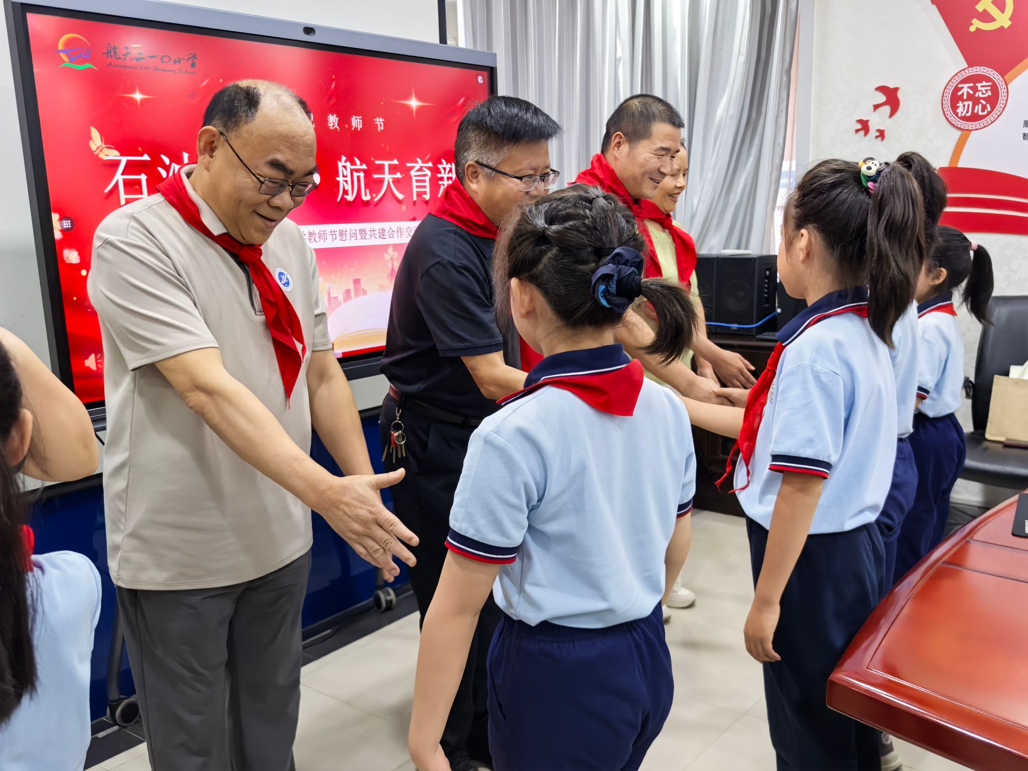 慶祝教師節(jié)活動上,航天210小學(xué)的少先隊員代表為張驍勇一行敬獻了紅領(lǐng)巾?;顒咏Y(jié)束后,雙方就合作共建的具體事項進行了深入交流。