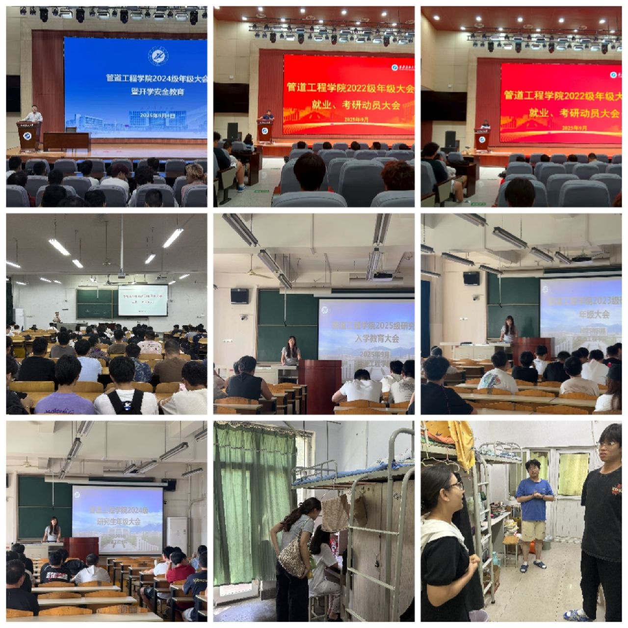 為確保新學期全院研究生、本科生在校期間的人身、財產安全,營造安全、和諧的校園環(huán)境,開學前期,學院成立了學生安全教育工作小組,并詳細制定了《管道工程學院2025-2026學年第一學期開學學生安全教育工作方案》。9月1日至9月10日,學院研究生、本科生各年級均全面、系統(tǒng)地開展了新學期開學安全教育系列工作。