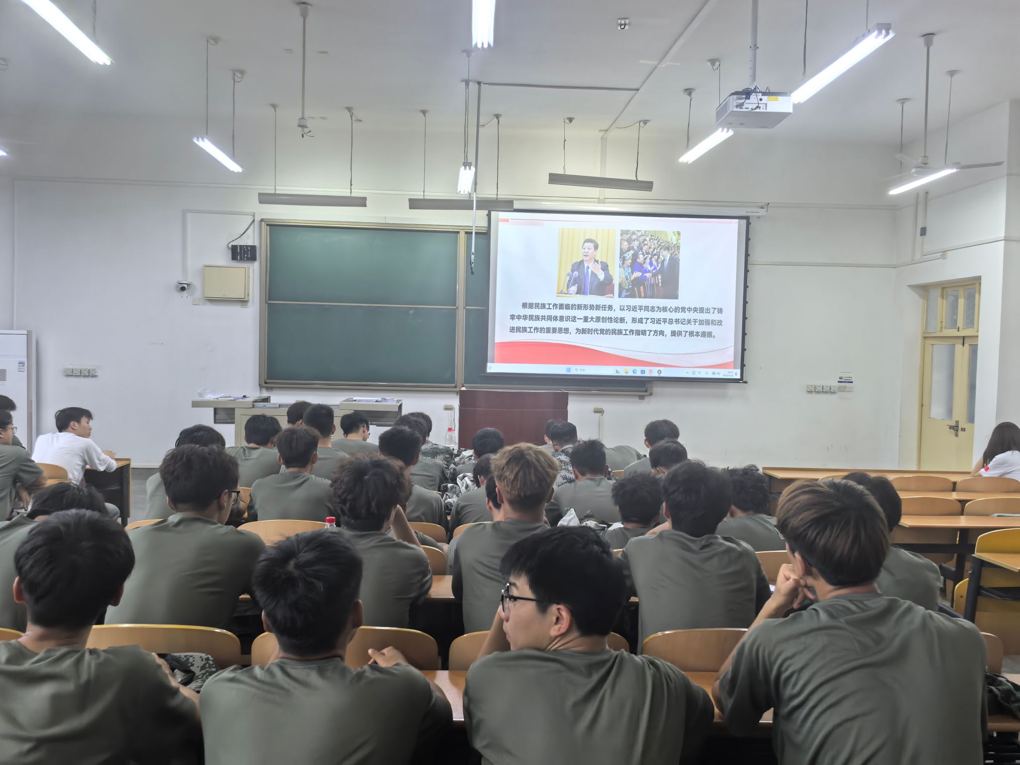 為深化“鑄牢中華民族共同體意識”教育,根據(jù)軍訓課程安排,學院組織新生集中觀看了《鑄牢中華民族共同體意識的重大意義與任務要求》系列教育視頻,并開展互動討論。