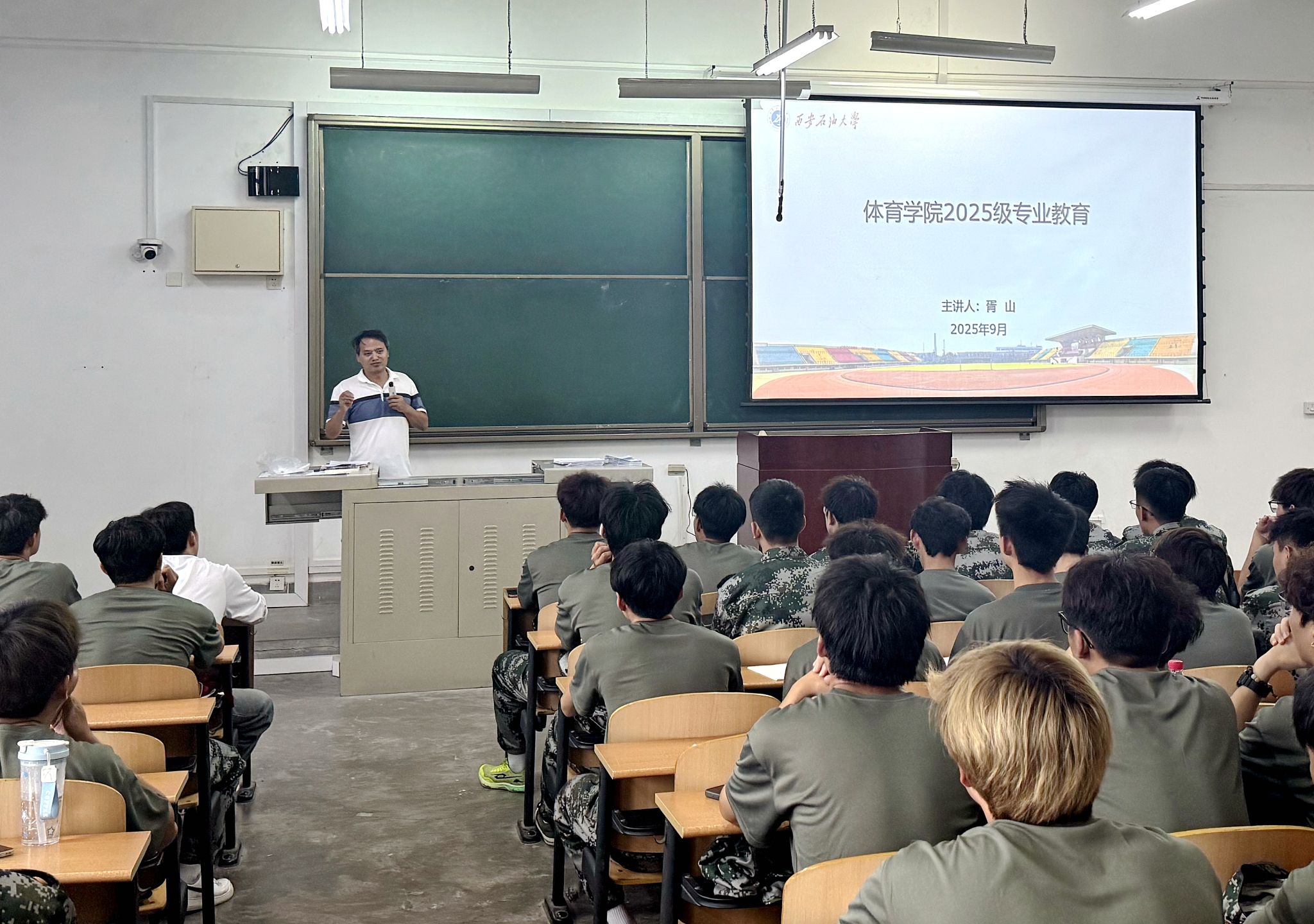 劉小波代表學院向新生啟航新征途,加入體育學院大家庭表示熱烈歡迎和誠摯祝福!并向新生提出三點希望:一是要志存高遠,勇?lián)鷷r代使命。他說,體育強國建設是民族復興的重要篇章,青年學子要將個人理想融入國家發(fā)展大局,以“全民健身”“鄉(xiāng)村振興”等國家戰(zhàn)略為指引,樹立遠大志向,成為推動健康中國建設的生力軍。二是要潛心學習,錘煉過硬本領。劉小波指出,社會體育指導與管理專業(yè)需立足社會需求,既要夯實運動解剖學、健身理論與指導等核心課程基礎,又要積極參與社區(qū)服務、賽事策劃等實踐項目,考取社會體育指導員等職業(yè)資格證書,將理論轉化為服務群眾的實際能力。三是要開拓創(chuàng)新,突破成長邊界。他鼓勵新生要提振自信,探索運動康復、智慧體育等新興領域,培養(yǎng)跨界思維,在創(chuàng)新創(chuàng)業(yè)中展現(xiàn)體育人的智慧與擔當,為體育產(chǎn)業(yè)高質(zhì)量發(fā)展注入新動能。
