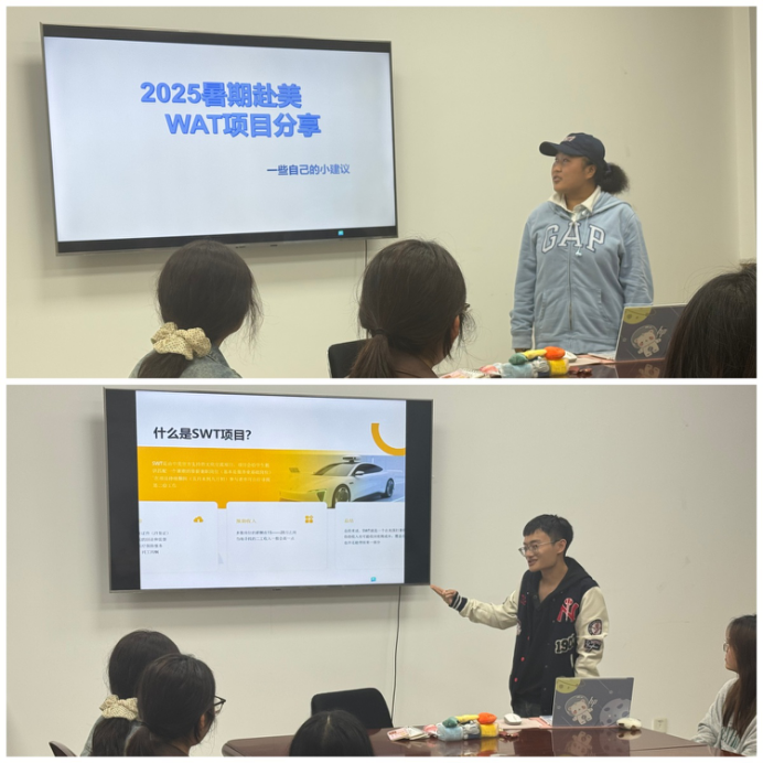 宣講會(huì)上,劉老師對(duì)赴美帶薪實(shí)習(xí)項(xiàng)目進(jìn)行了全面而深入的解讀。她首先詳細(xì)介紹了該項(xiàng)目的背景、宗旨及其在提升跨文化交際能力與職業(yè)競(jìng)爭(zhēng)力方面的獨(dú)特優(yōu)勢(shì)。隨后,她重點(diǎn)講解了實(shí)習(xí)崗位的具體類型、申請(qǐng)資格與流程、以及項(xiàng)目的時(shí)間安排與費(fèi)用構(gòu)成。劉老師還結(jié)合往屆參與學(xué)生的成功案例,生動(dòng)分享了他們?cè)诿绹墓ぷ黧w驗(yàn)、文化收獲與安全注意事項(xiàng),并就同學(xué)們普遍關(guān)心的簽證辦理、住宿安排、薪酬待遇等問題進(jìn)行了耐心細(xì)致的解答,為同學(xué)們勾勒出一幅清晰而充滿機(jī)遇的海外實(shí)踐藍(lán)圖。前期參與項(xiàng)目學(xué)生也在現(xiàn)場(chǎng)為同學(xué)們分享了他們的親身經(jīng)歷。