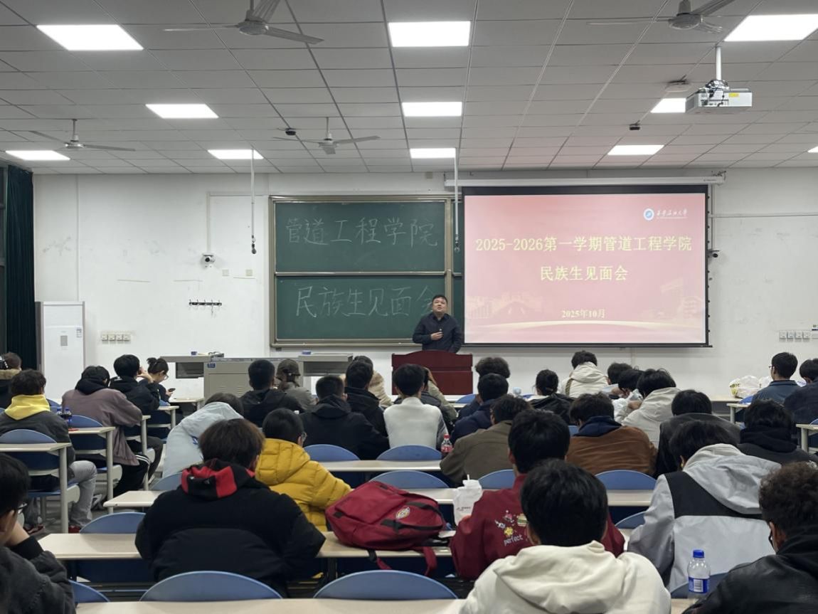 為鑄牢中華民族共同體意識,提升少數(shù)民族學(xué)生工作成效,10月22日晚,管道工程學(xué)院在鄠邑校區(qū)博思樓B105舉行了2025-2026學(xué)年第一學(xué)期少數(shù)民族生交流會。學(xué)院黨委副書記高亮、2022級輔導(dǎo)員奴麗艷木·夏甫開提、全院117位來自維吾爾族、藏族、回族等多個民族的學(xué)生參加交流會。