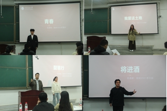 比賽在熱烈氛圍中拉開帷幕。圍繞“典耀中華,賡續(xù)文脈”主題,參賽選手依次登臺,以飽滿的熱情和多樣的形式演繹經(jīng)典作品。有的深情婉轉,如溪流潺潺;有的激昂澎湃,似烈火熾燃?!秾⑦M酒》的豪邁、《青春》的激揚、《琵琶行》的婉轉、《中國文脈》的厚重……選手們用聲音勾勒詩意畫卷,用情感傳遞文化力量,贏得了現(xiàn)場觀眾的陣陣掌聲。經(jīng)過激烈角逐,勘探2503鄧雯軒《青春》 與勘探2501李興喆《將進酒》 斬獲一等獎,并將代表學院參加校級“秋之韻”詩文配樂朗誦比賽。