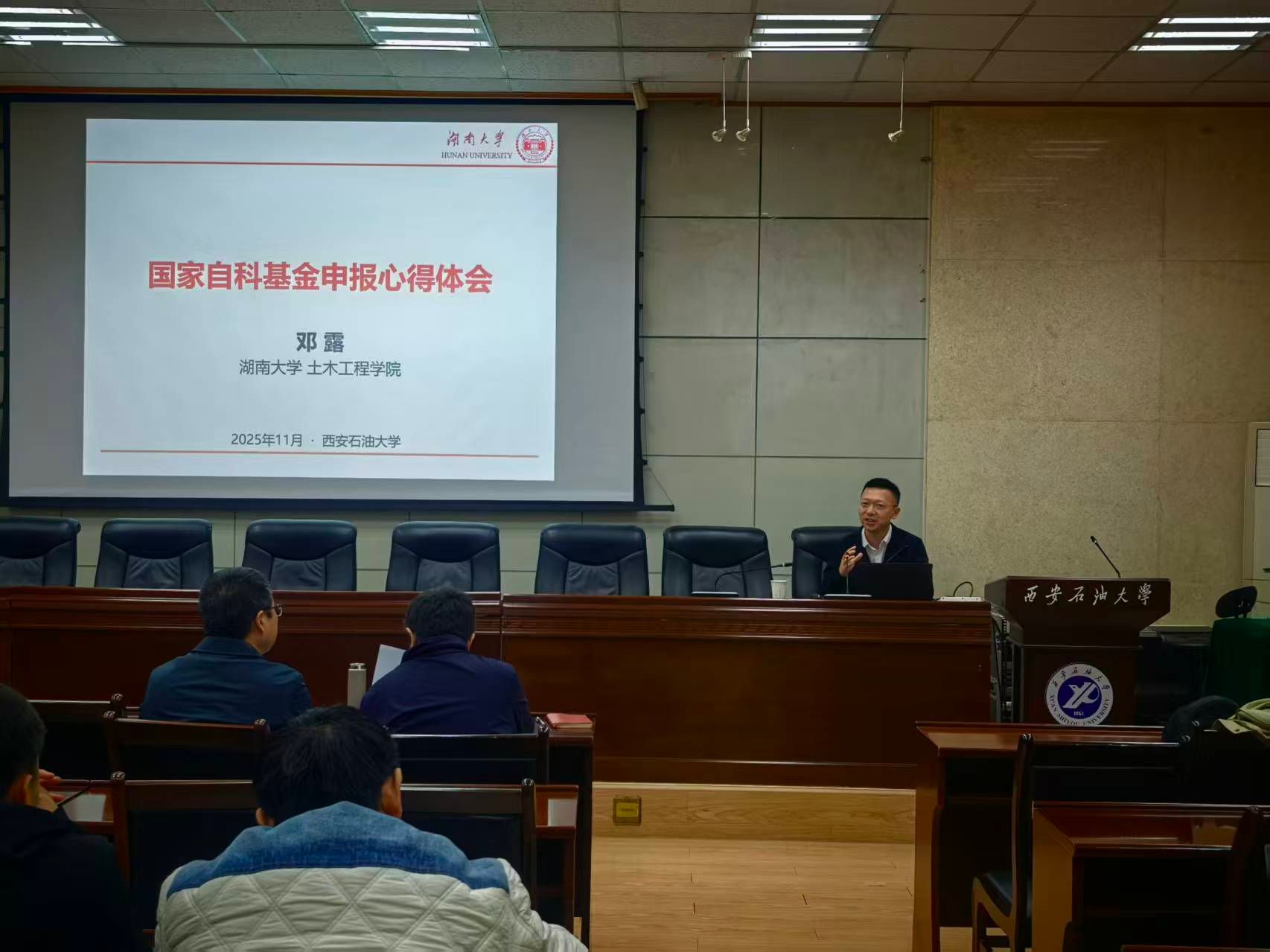 為進(jìn)一步提升學(xué)院科研創(chuàng)新能力與核心競爭力,充分激發(fā)教師申報國家自然科學(xué)基金項目的積極性,切實提高申報質(zhì)量與成功率,11 月 7 日上午,管道工程學(xué)院在雁塔校區(qū)會議中心第三會議室召開2026年度國家自然科學(xué)基金項目申報動員會暨專家報告會。報告特邀湖南大學(xué)二級教授鄧露作專題分享,院長蔣華義、副院長崔瑩及全院教師參加會議,會議由副院長代建波主持。