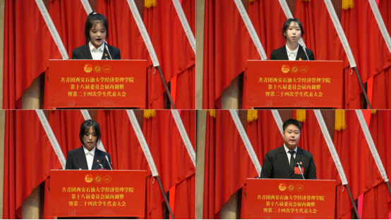 會(huì)上,學(xué)院團(tuán)委書記張碩宣讀了《共青團(tuán)西安石油大學(xué)經(jīng)濟(jì)管理學(xué)院委員會(huì)關(guān)于第十八屆委員會(huì)組織成員調(diào)整任命的通知》,新任團(tuán)委委員依次表態(tài)發(fā)言。團(tuán)學(xué)指導(dǎo)老師李政宣讀了《第二十四次學(xué)生代表大會(huì)選舉辦法》,與會(huì)代表民主投票選舉產(chǎn)生了新一屆學(xué)生委員會(huì)委員。大會(huì)聽取并審議通過了《大會(huì)籌備工作報(bào)告》《第二十三屆學(xué)生會(huì)年度工作報(bào)告》和《第二十四次學(xué)生代表大會(huì)提案工作報(bào)告》,新任團(tuán)委委員、當(dāng)選學(xué)生委員會(huì)委員面向團(tuán)旗進(jìn)行了莊嚴(yán)宣誓。