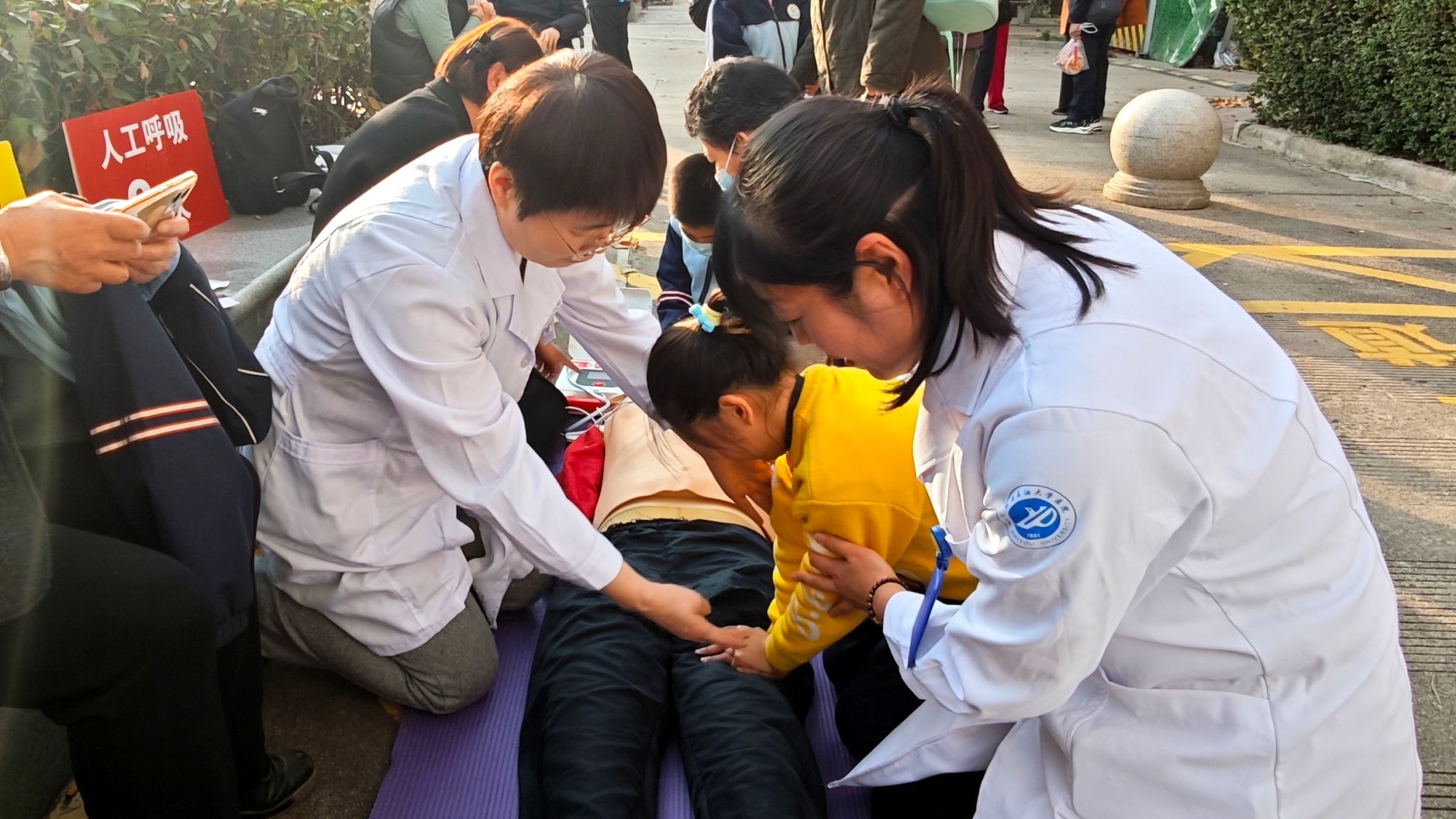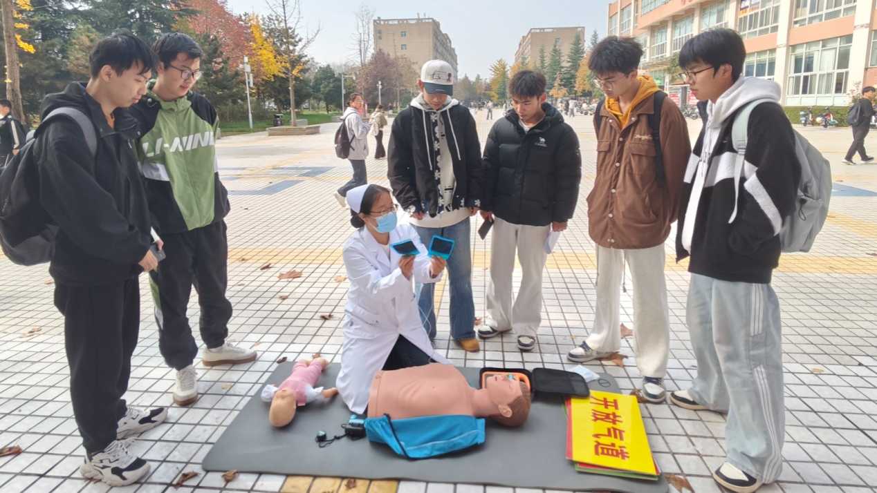 為提升校園應(yīng)急救護(hù)能力,校醫(yī)院護(hù)理部急救師資團(tuán)隊(duì)在兩場活動中同步開展應(yīng)急救護(hù)實(shí)操培訓(xùn)。借助模擬人教具,重點(diǎn)演示心肺復(fù)蘇(CPR)、自動體外除顫儀(AED)操作及海姆立克急救法,將專業(yè)操作拆解為清晰步驟,采用“理論講解+模擬實(shí)操”相結(jié)合的方式授課。