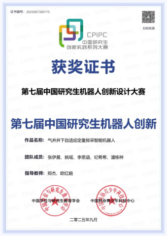 9月26日至29日,第七屆中國(guó)研究生機(jī)器人創(chuàng)新設(shè)計(jì)大賽全國(guó)總決賽在山東省濟(jì)南市融創(chuàng)國(guó)際會(huì)議中心隆重舉辦。本屆大賽報(bào)名啟動(dòng)以來,全國(guó)224家培養(yǎng)單位的1545支隊(duì)伍參賽,較去年增加330余支。為保證大賽評(píng)審工作公平公正,大賽組委會(huì)邀請(qǐng)70家單位159位專家擔(dān)任初賽評(píng)委。8月27日大賽初賽評(píng)審?fù)瓿?,最終來自104家培養(yǎng)單位的325支隊(duì)伍入圍決賽。我校機(jī)械工程學(xué)院“氣井井下自適應(yīng)定量排采智能機(jī)器人”作品獲得全國(guó)三等獎(jiǎng),團(tuán)隊(duì)成員有張伊晨、姚瑤、李思涵、紀(jì)希希、潘棟梓,鄭杰、歐紅娟任指導(dǎo)教師。