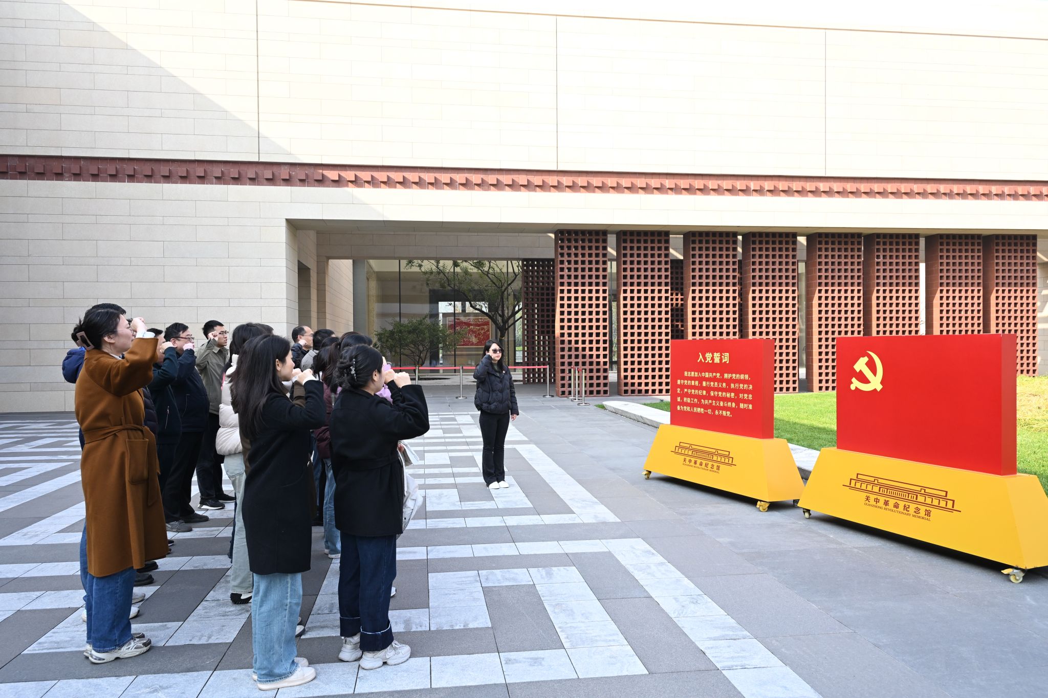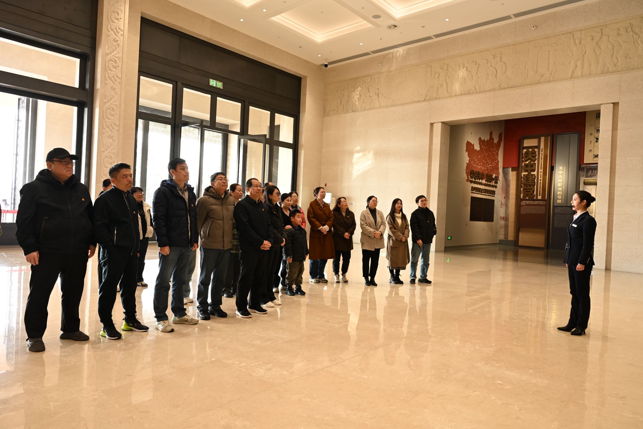 步入關(guān)中革命紀(jì)念館,老師們?cè)谥v解員聲情并茂的敘述中凝神聆聽(tīng),從“關(guān)中新民主主義革命”的烽火歲月,到“習(xí)仲勛同志生平陳列”的赤膽忠心,再到“新時(shí)代陜西實(shí)踐成果”的輝煌成就,一段段波瀾壯闊的歷史被鮮活再現(xiàn)。這場(chǎng)深入的精神洗禮,讓革命先烈的崇高風(fēng)范與偉大精神深深地烙印在每個(gè)人心中,讓大家對(duì)關(guān)中大地革命與建設(shè)的崢嶸歲月與當(dāng)代華章有了更全面的把握。在紀(jì)念館內(nèi),學(xué)院黨委書(shū)記潘娜帶領(lǐng)全體黨員肅立于鮮紅黨旗前,重溫入黨誓詞,這不僅是對(duì)革命先輩的深切致敬,更是全體教職工黨員堅(jiān)守初心、踐行使命的鄭重承諾。