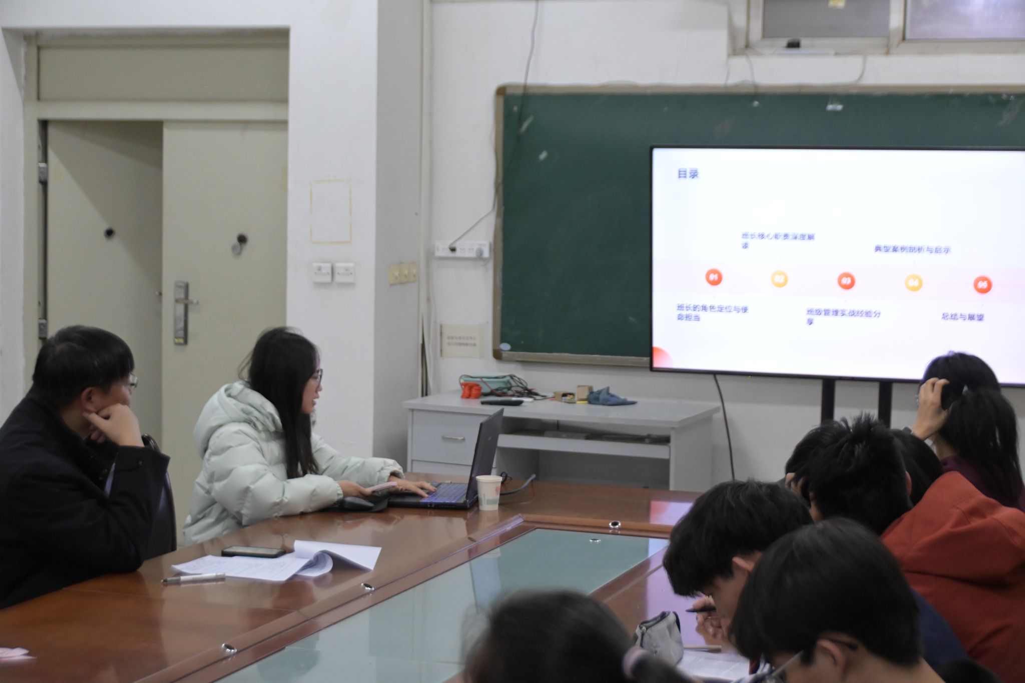 在教師分享環(huán)節(jié),受邀的優(yōu)秀班主任代表分模塊進(jìn)行了深入淺出的講解。龐波老師通過(guò)典型案例,分析了如何發(fā)揮優(yōu)秀學(xué)生的示范效應(yīng),同時(shí)做好學(xué)業(yè)困難學(xué)生的精準(zhǔn)幫扶;李猛老師結(jié)合自身的工作經(jīng)驗(yàn),強(qiáng)調(diào)了關(guān)注學(xué)生個(gè)體差異、實(shí)施因材施教的重要性;張旋老師從選拔、培養(yǎng)、激勵(lì)三個(gè)環(huán)節(jié),闡述了學(xué)生骨干梯隊(duì)的長(zhǎng)效機(jī)制。各位老師的分享既有理論高度,又具實(shí)踐價(jià)值,為班長(zhǎng)們開(kāi)展工作提供了專業(yè)指導(dǎo)。
