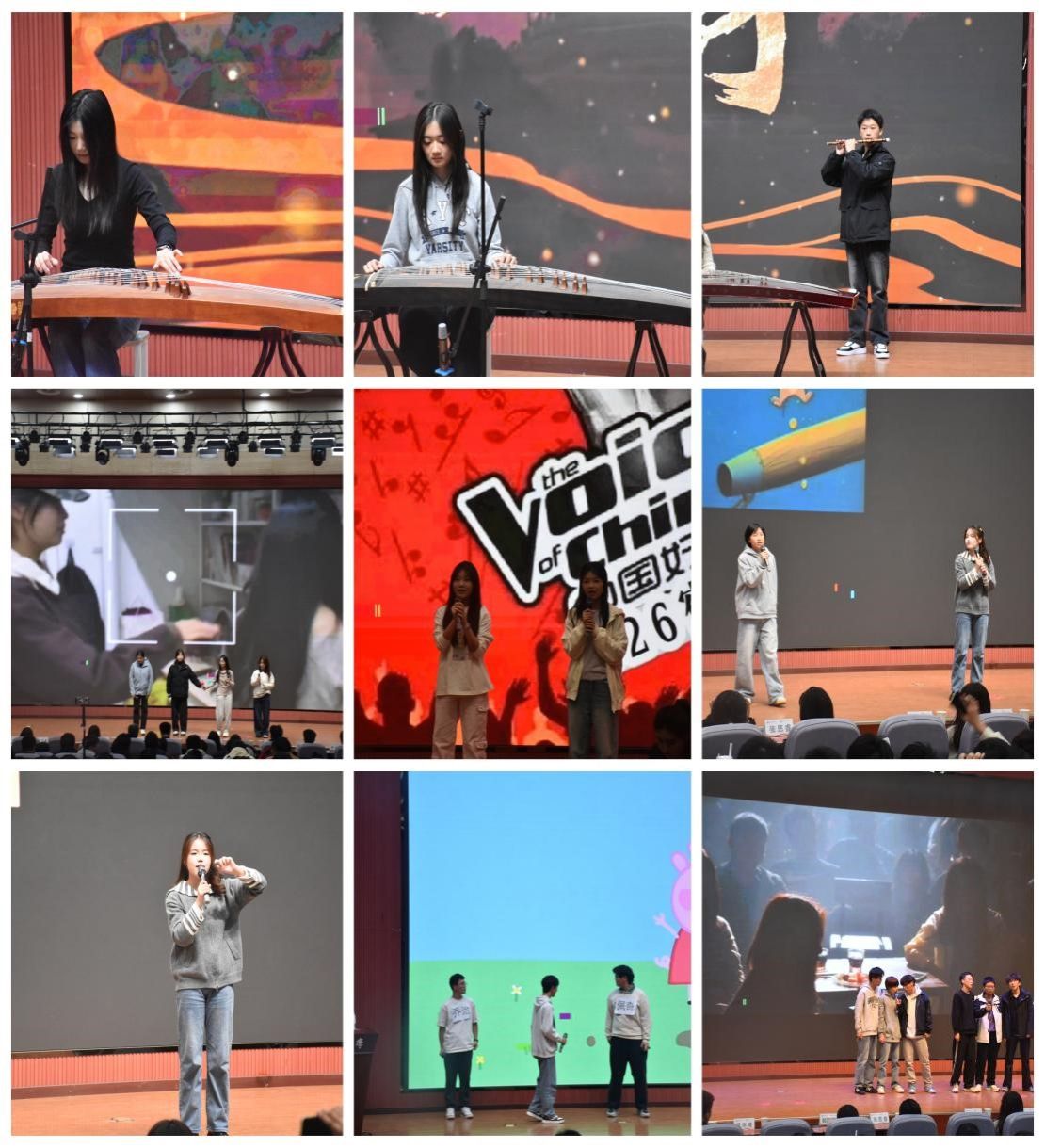 表彰環(huán)節(jié)結(jié)束后,獲獎(jiǎng)宿舍分別展示了各自的豐碩成果。民樂(lè)合奏《象王行》先聲奪人,氛圍瞬間點(diǎn)燃;五個(gè)宿舍依次登臺(tái)展示了各具特色的舍徽設(shè)計(jì)歷程,從理念構(gòu)思到視覺(jué)成型,每一處細(xì)節(jié)都凝聚著同學(xué)們的巧思與團(tuán)隊(duì)智慧;手抄報(bào)作品《雅室生輝》,通過(guò)圖文并茂的形式,生動(dòng)詮釋了宿舍文化的內(nèi)涵,彰顯出深厚的情感寄托與人文意趣;宿舍成員合唱《一笑傾城》、《愛(ài)錯(cuò)》、《成都》,以歌聲傳遞出室友間的溫情與默契;宿舍主題演講《屋檐下的星光》《致635的我們》,真摯表達(dá)了同學(xué)們對(duì)宿舍生活的深厚情感與美好期盼;舞臺(tái)劇《宿舍好聲音》、英語(yǔ)表演《Muddy Puddles》及微電影《629“甄嬛傳之曠課風(fēng)波》,則憑借生動(dòng)演繹與巧妙創(chuàng)意,將現(xiàn)場(chǎng)氣氛推向高潮,笑聲掌聲不絕。