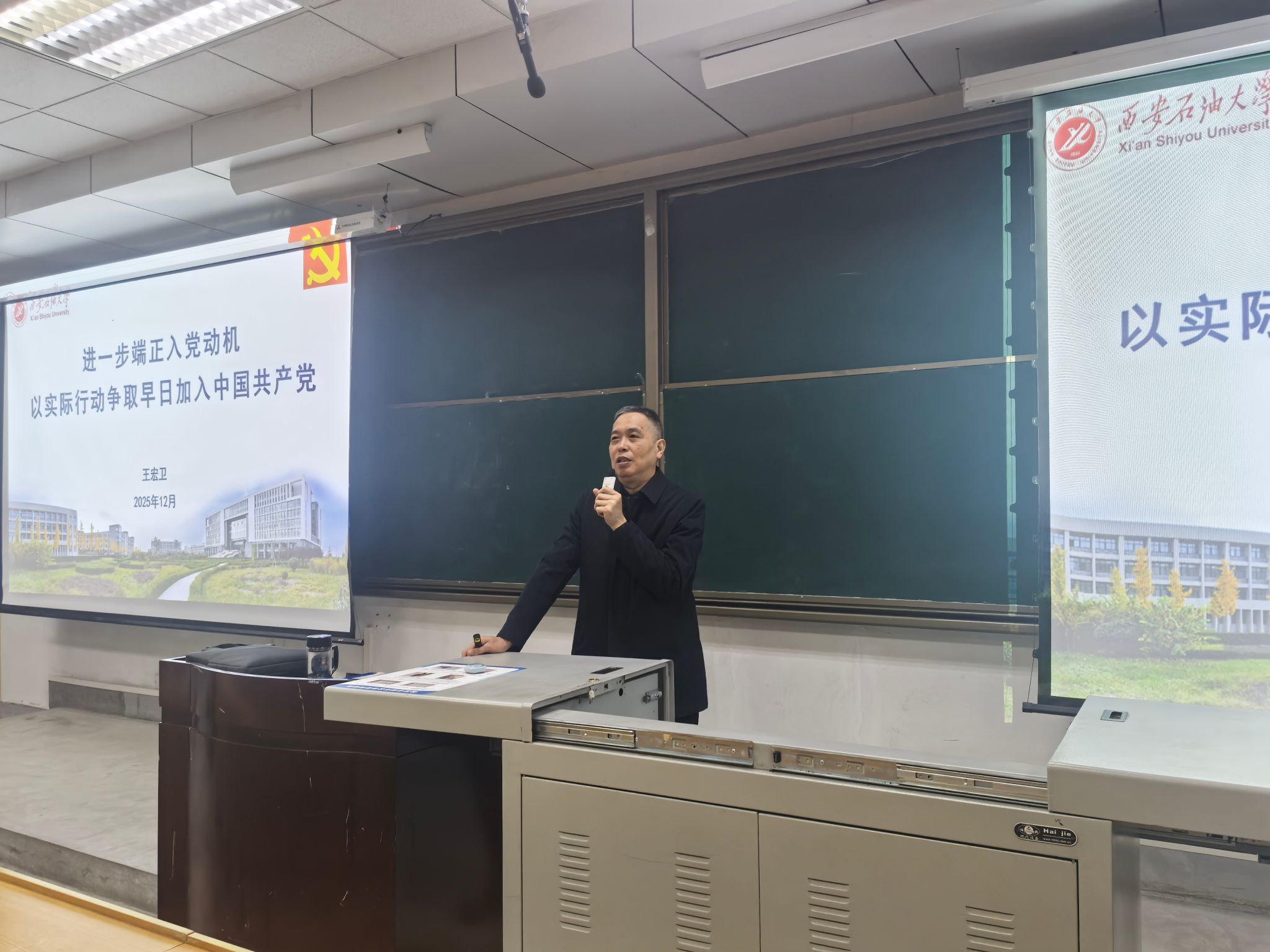 王宏衛(wèi)結(jié)合《中國共產(chǎn)黨黨員教育管理工作條例》《全國黨員教育培訓(xùn)規(guī)劃》《中國共產(chǎn)黨紀(jì)律處分條例》等文件要求,要求全體學(xué)員把端正入黨動機(jī),堅(jiān)守初心使命作為爭取入黨的首要課題;其次對標(biāo)《中國共產(chǎn)黨章程》《關(guān)于新形勢下黨內(nèi)政治生活的若干準(zhǔn)則》等制度規(guī)范,強(qiáng)調(diào)全體學(xué)員要將錘煉黨性修養(yǎng)、提升政治品格作為自我提升的核心任務(wù);他結(jié)合高校黨建實(shí)際,通過剖析大學(xué)生入黨積極分子培養(yǎng)考核典型案例,引導(dǎo)學(xué)員將理論認(rèn)知轉(zhuǎn)化為實(shí)踐自覺,在知行合一中筑牢信仰之基?!扒嗄晔屈h的事業(yè)的繼承者,端正入黨動機(jī)是入黨的第一步,更是一生的必修課?!彼銊?lì)全體學(xué)員牢記共產(chǎn)黨人初心使命,堅(jiān)定理想信念,恪守黨員品質(zhì),積極向黨組織靠攏。