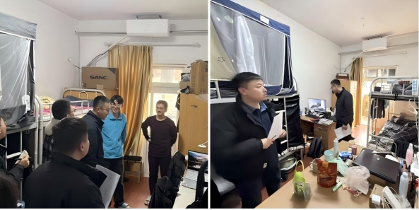 排查過程中,輔導員老師們秉承認真負責的態(tài)度,逐一走訪學生寢室。他們仔細查看宿舍內是否存在違規(guī)使用大功率電器、私拉亂接電線、電器使用后未及時斷電等安全隱患;提醒同學們保持寢室整理,及時清理雜物,避免在宿舍內堆放易燃物品。同時,檢查人員還與同學們進行了面對面交流,了解研究生科研學習情況、生活中存在的問題與困難等,并在現場開展消防安全知識宣傳與教育,強調冬季用電用火安全的重要性,叮囑研究生牢固樹立“安全第一,預防為主”的思想,自覺遵守宿舍管理規(guī)定,共同維護安全和諧的住宿環(huán)境。