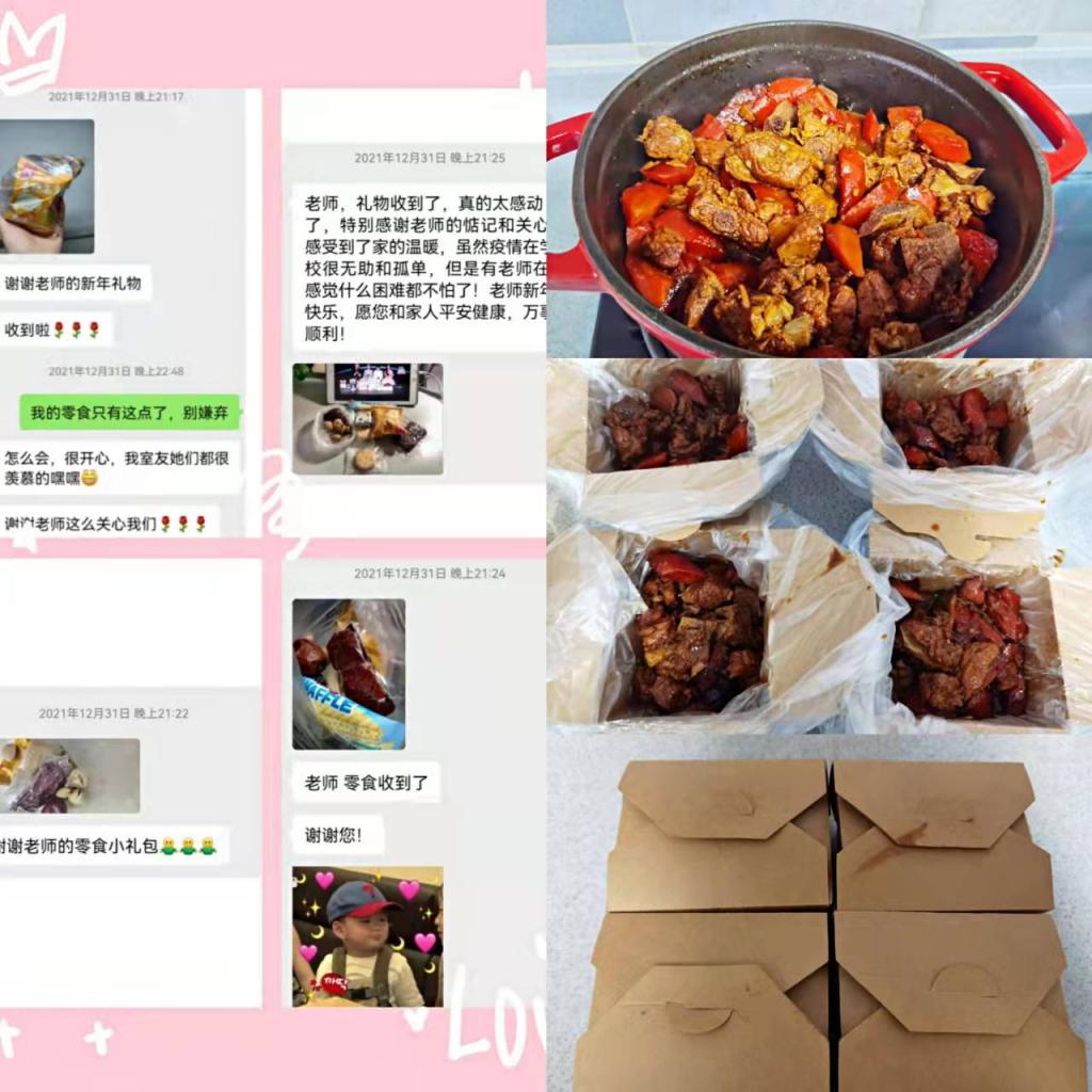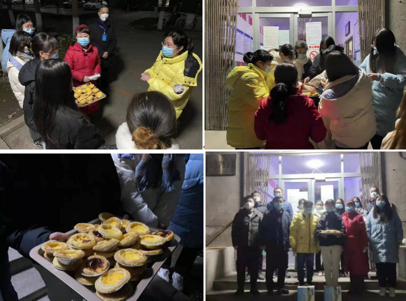 有一種甜刻入記憶,有一種香沉入心田。經(jīng)濟管理學院人力黨支部朱海娟老師用了整整一下午的時間烘焙了兩烤箱的蛋撻,并且和楊睿娟老師一同將剛出爐的食物第一時間送到研究生志愿者手中。夜幕襯托著食物騰騰熱氣暖到心間,冬日的蕭瑟抵不過蛋撻入口的香甜,志愿者一天的辛苦也隨著滿滿的甜蜜在冷風中消逝,金黃的蛋撻不僅甜了嘴巴更融了寒冷。一個人遇到好老師是人生的幸運,一個學校擁有好老師是學校的光榮,一個民族源源不斷涌現(xiàn)出一批又一批好老師則是民族的希望。經(jīng)濟管理學院的老師踐行了教師的職責與使命,他們以身作則的工作態(tài)度教會學生盡職盡責,他們無微不至的體貼與關(guān)懷更帶給了學生愛與希望,如果疫情是電閃雷鳴的狂風暴雨,那經(jīng)管師生情就是雨后最美的彩虹。