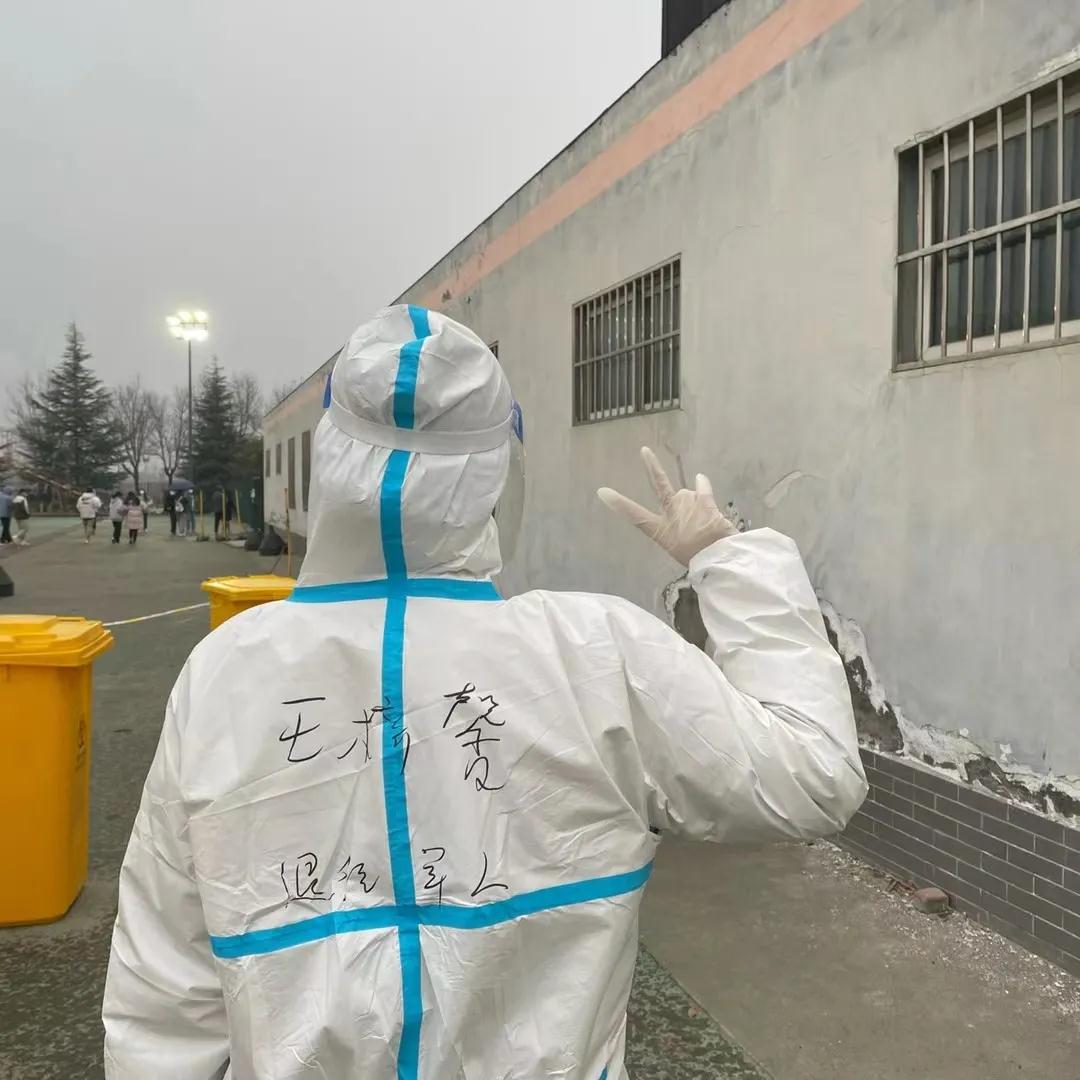 脫下的是軍裝,不變的是軍魂。在全員核酸檢測之初,王梓馨同學就與我校退伍大學生一起,立下了請戰(zhàn)書,投入到了核酸檢測的一線工作之中,為同學們指引排隊位置,協助醫(yī)護人員進行“一碼通”查驗。每一次的全員核酸檢測都有著他們的辛勤付出,在天剛蒙蒙亮的清晨,他們就必須動身前往操場,為馬上要進行的核酸檢測進行準備工作:搭桌子、擺設備、調試工具……在溫度為零度以下的操場上,王梓馨和其他戰(zhàn)友不畏嚴寒,身著防護服與醫(yī)護人員一起,化身守護我們的“大白”。特別是在2022年全國碩士研究生招生考試中,王梓馨同學也是毅然加入到志愿服務第一線,冒著大雪引導考研同學和考務人員進行核酸檢測,為考研學子保駕護航。