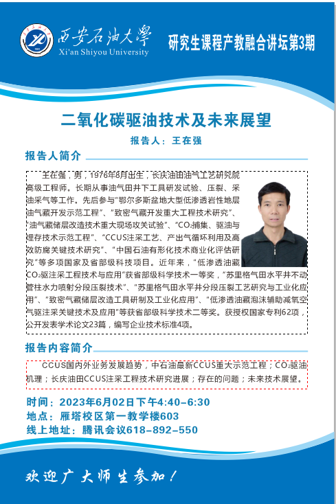 研究生課程產(chǎn)教融合講壇第3期:二氧化碳驅(qū)油技術(shù)及未來(lái)展望