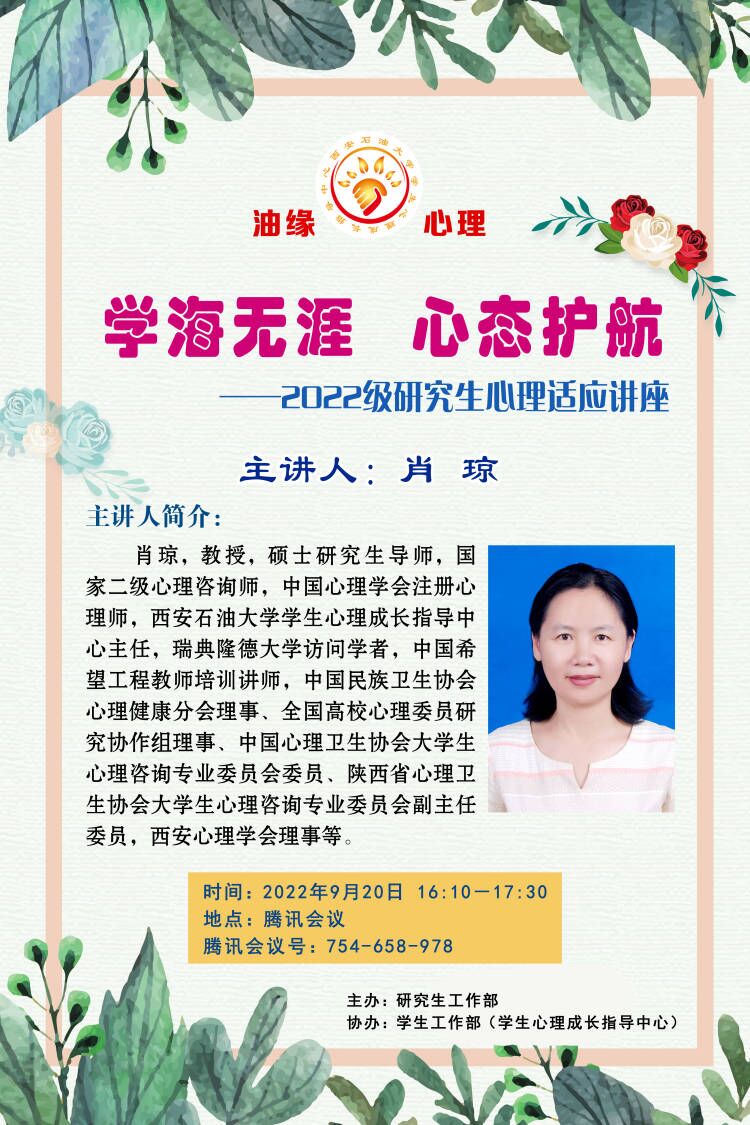 學(xué)海無涯 心態(tài)護(hù)航——2022級研究生心理適應(yīng)講座