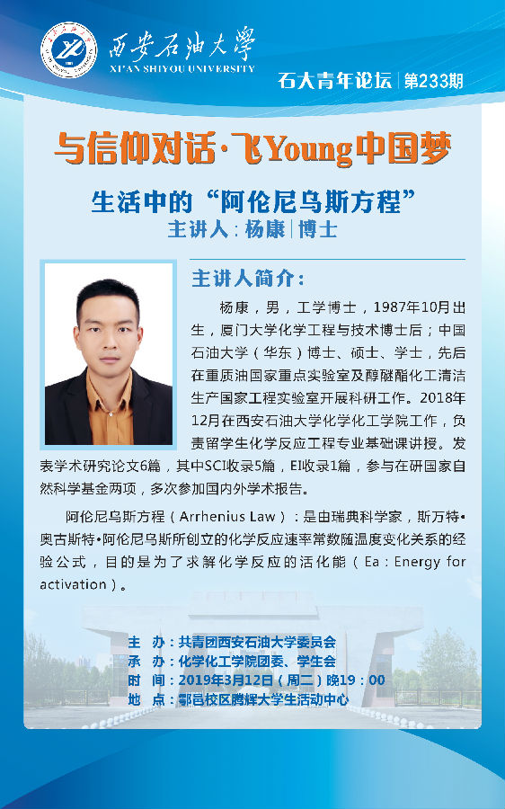 石大青年論壇第233期之:生活中的“阿倫尼烏斯方程”