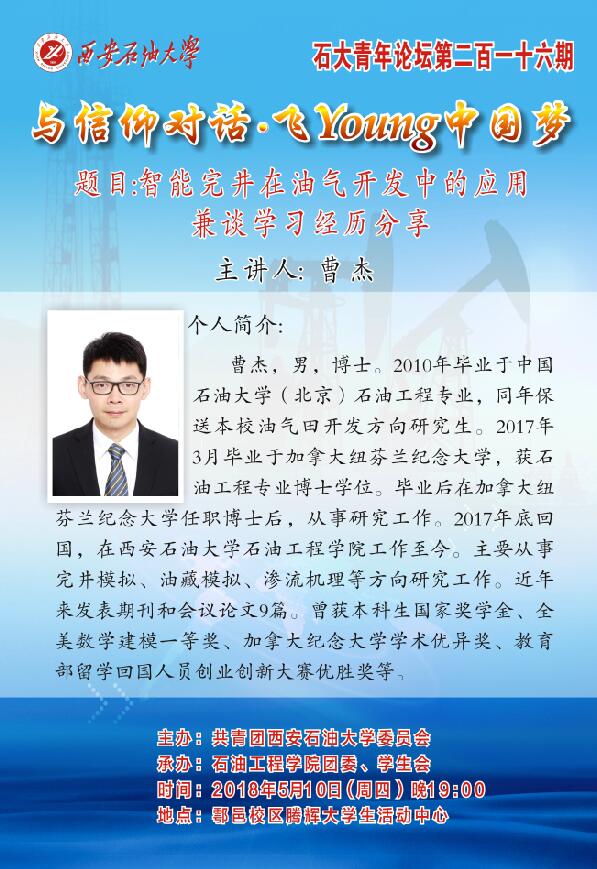 石大青年論壇第216期之:智能完井在油氣開發(fā)中的應(yīng)用兼談學(xué)習(xí)經(jīng)歷分享