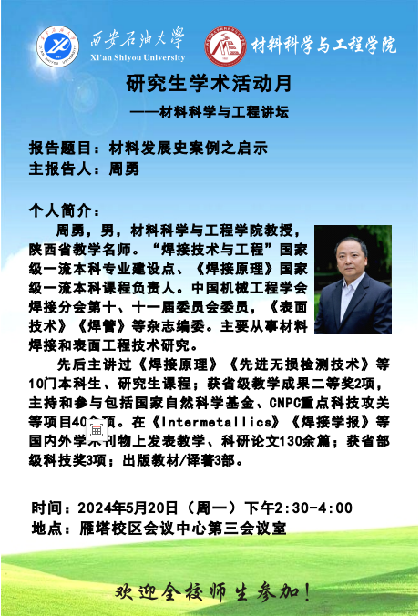 報告地點:西安石油大學本科招生視頻號 西安石油大學本科招生B站官方號